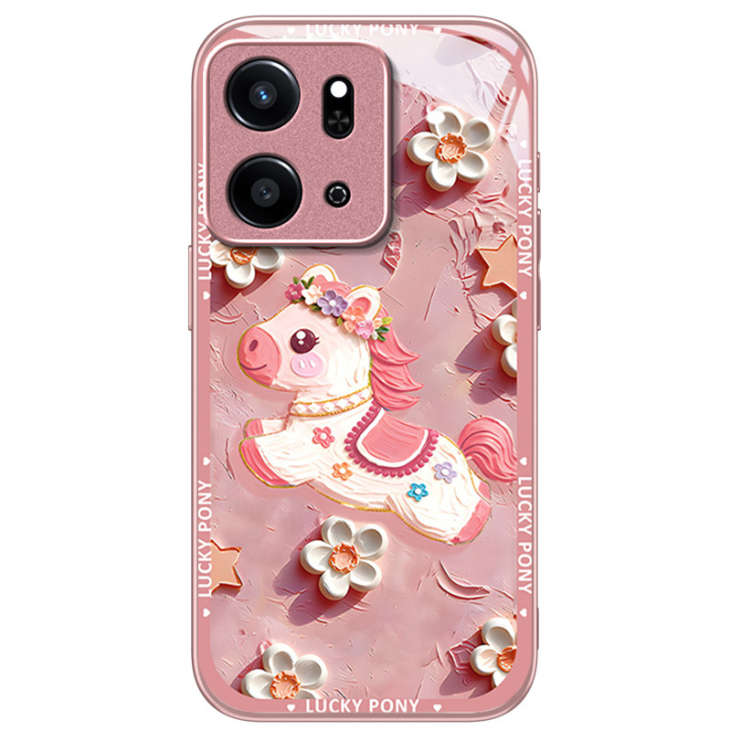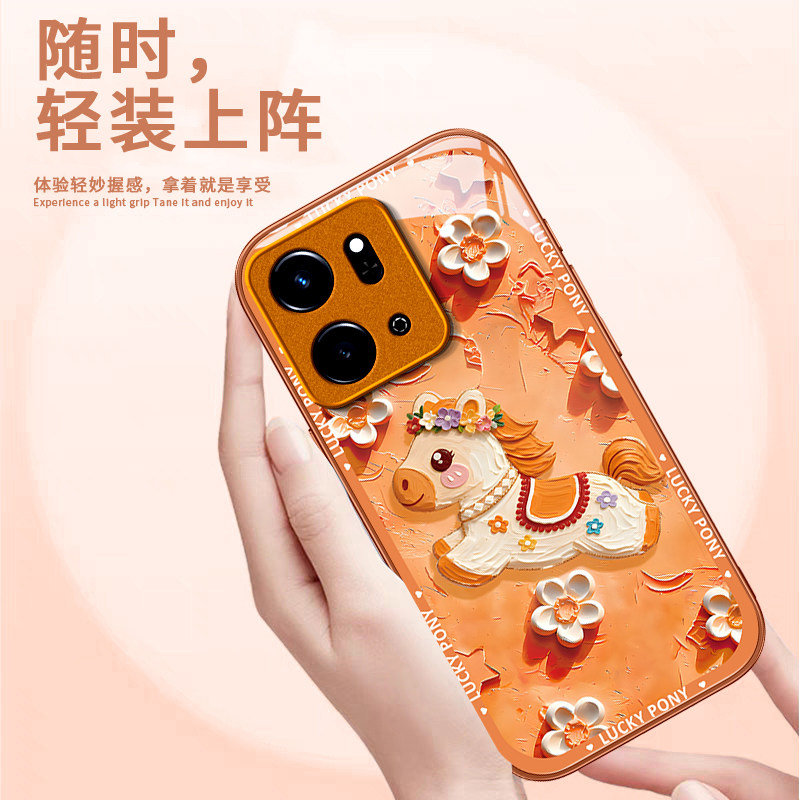 适用荣耀Play9T手机壳新年款honor金属漆Play6t玻璃Play8T油画小马Play5T活力板Play5TPro高端硬壳防摔保护套