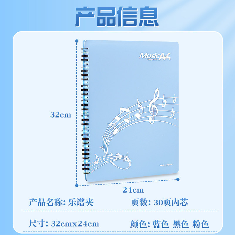 乐谱夹a4谱夹子不反光可修改谱音乐合唱谱曲夹展开式钢琴谱曲谱透明插页古筝琴谱收纳册黑色文件夹合唱曲谱夹
