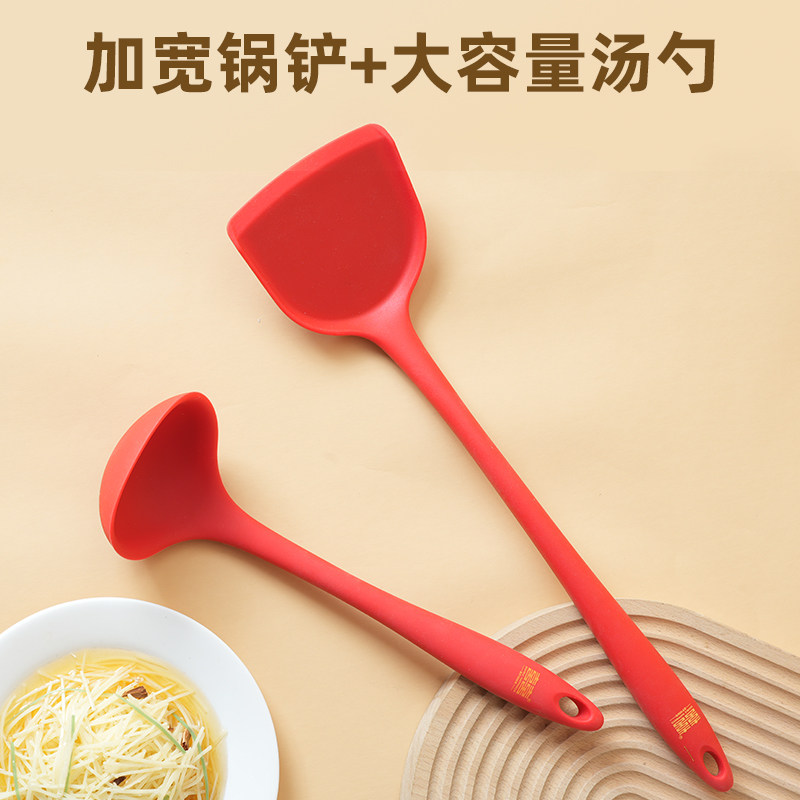 双喜红色硅胶铲勺不粘锅家用耐高温锅铲汤勺厨具套装官方正品