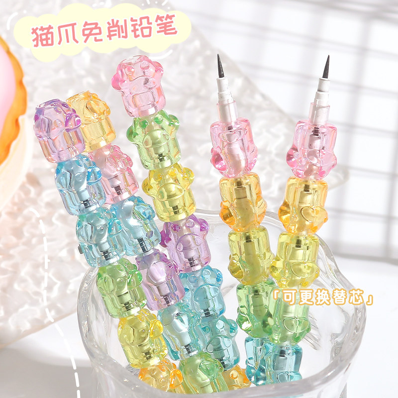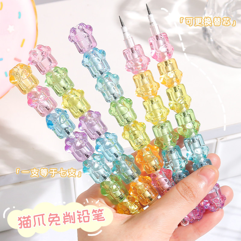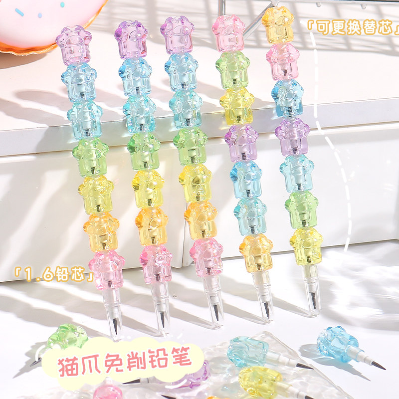 猫爪下蛋笔卡通可爱女孩免削铅笔小学生不断芯HB铅笔可换芯不易断