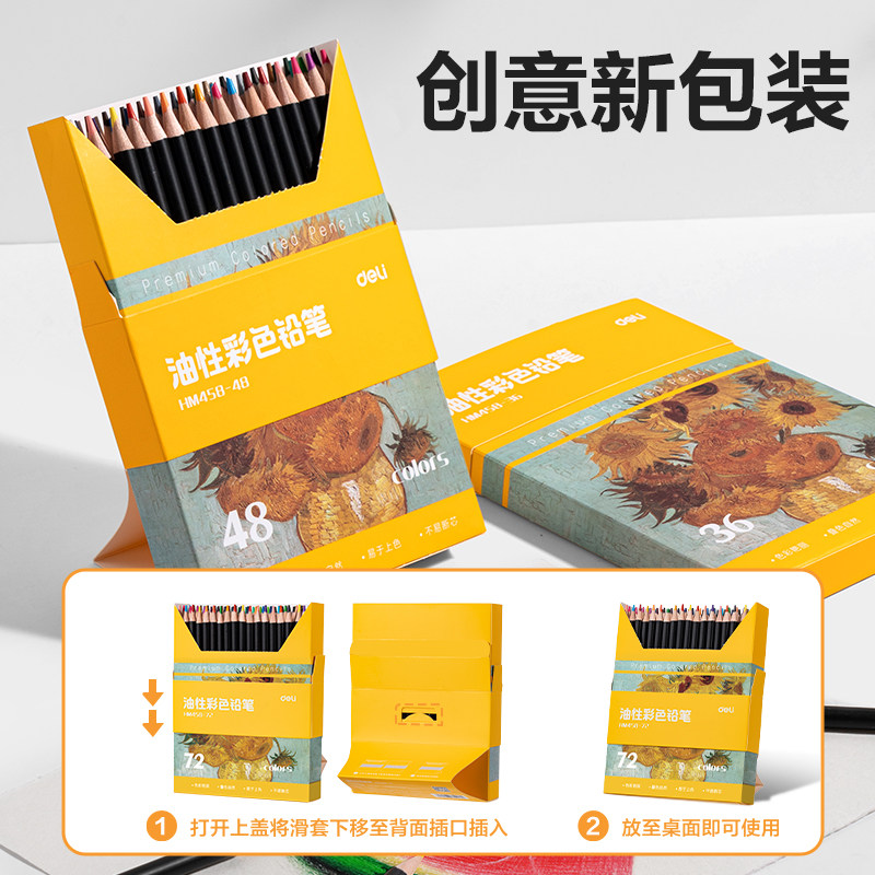 得力油性彩铅美术生专用油性彩色铅笔套装36色48色72色专业入门级初学者小学生绘画儿童彩铅笔画笔美术素描