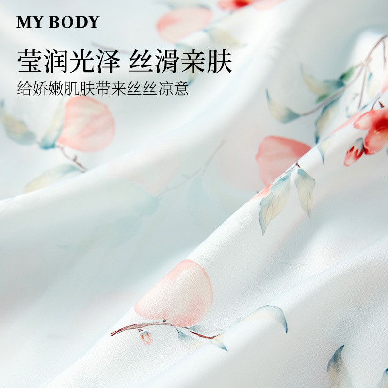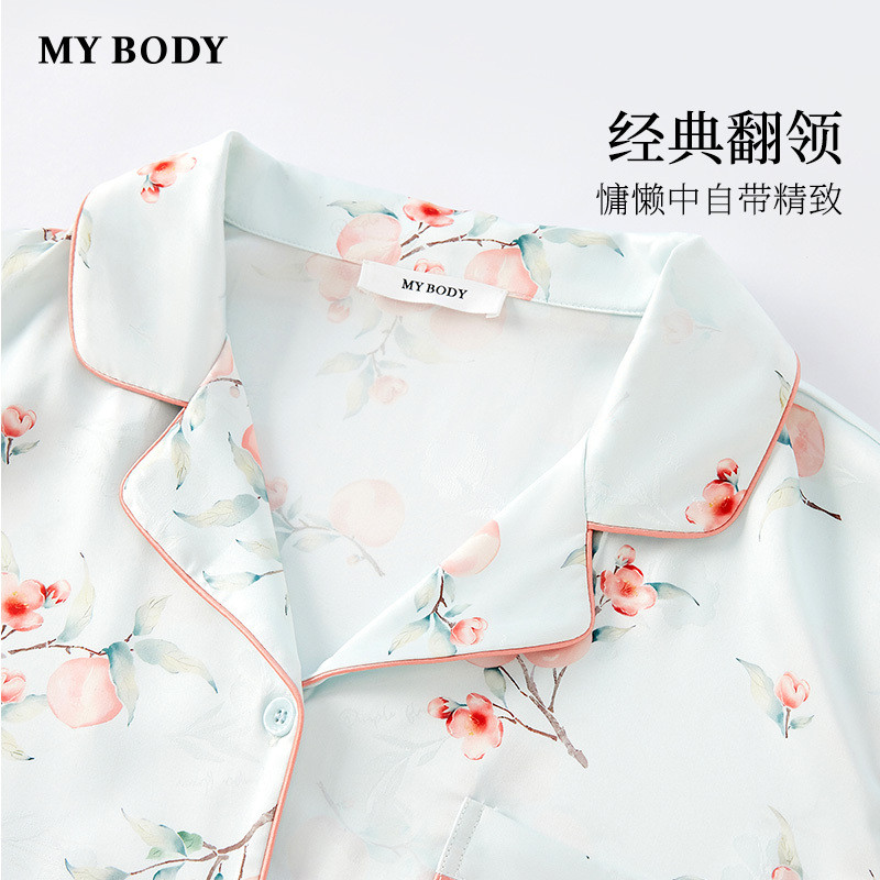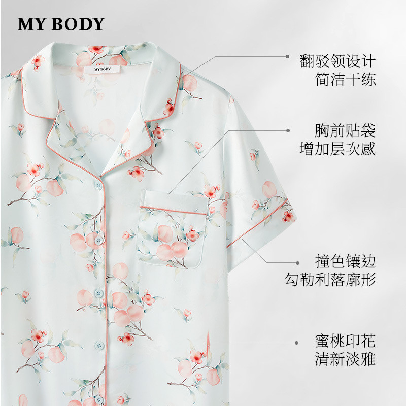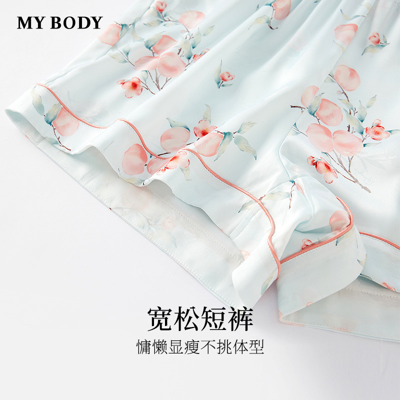 MYBODY商场同款睡衣套装女宽松凉感丝滑印花短袖短裤可外穿家居服