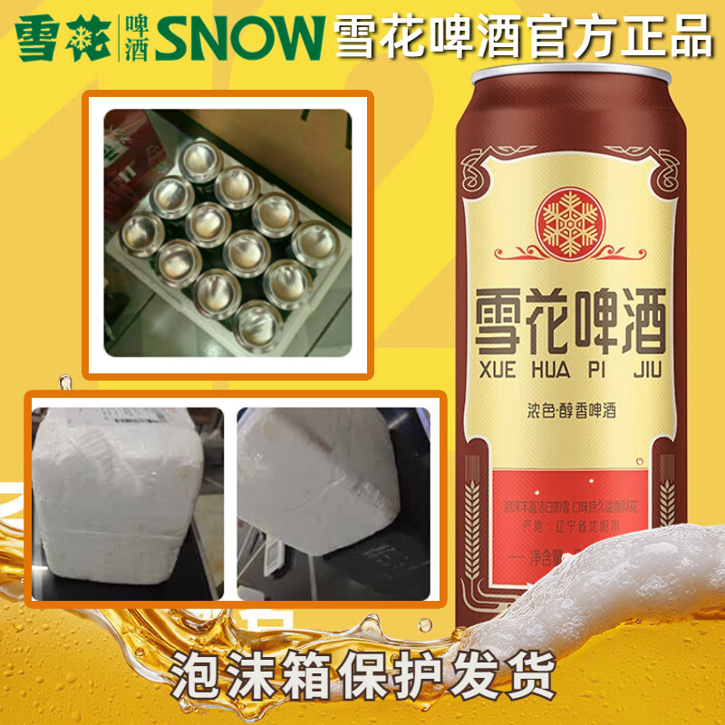 雪花经典沈阳老雪啤酒500ml罐装听装拉罐黄啤香醇原麦汁浓度12