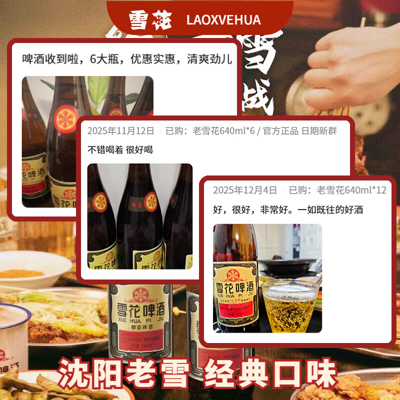 雪花啤酒经典沈阳老雪花12度640ml×12瓶香醇经典拉格啤酒
