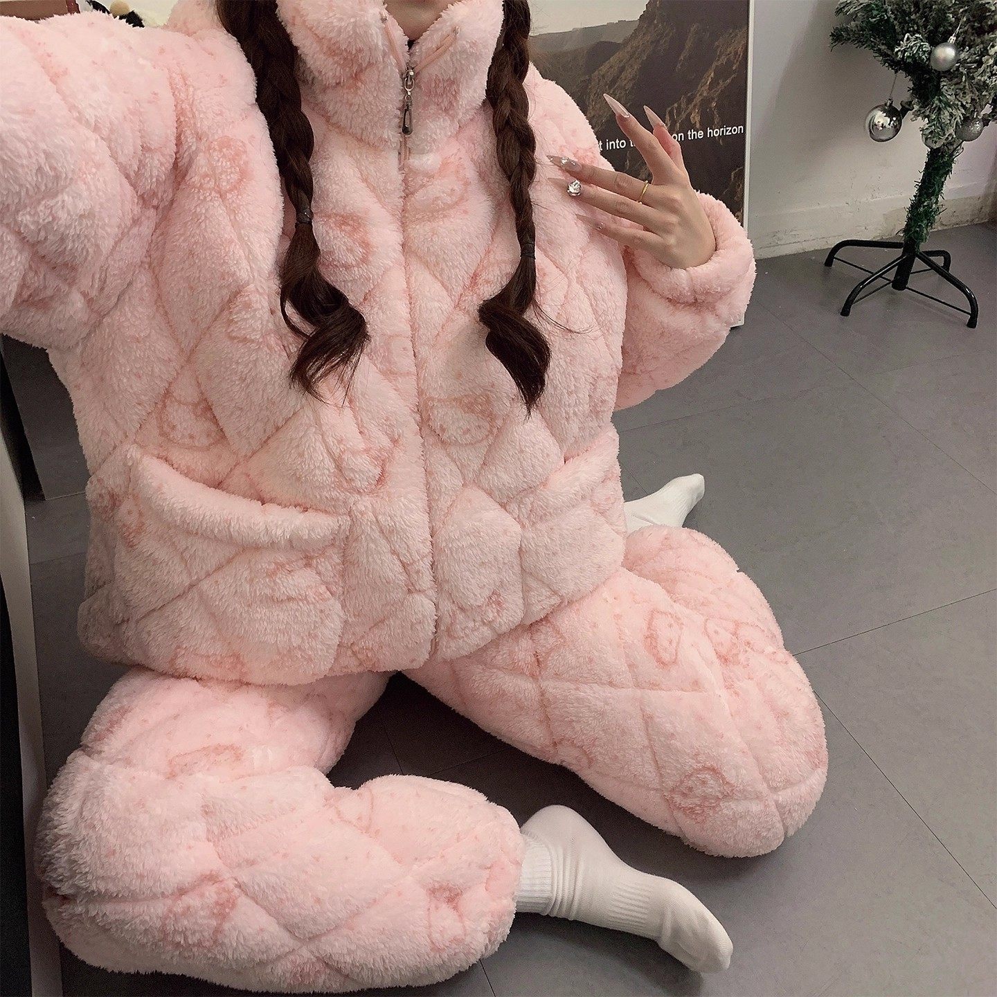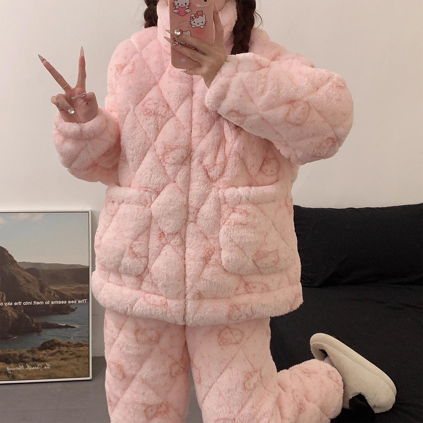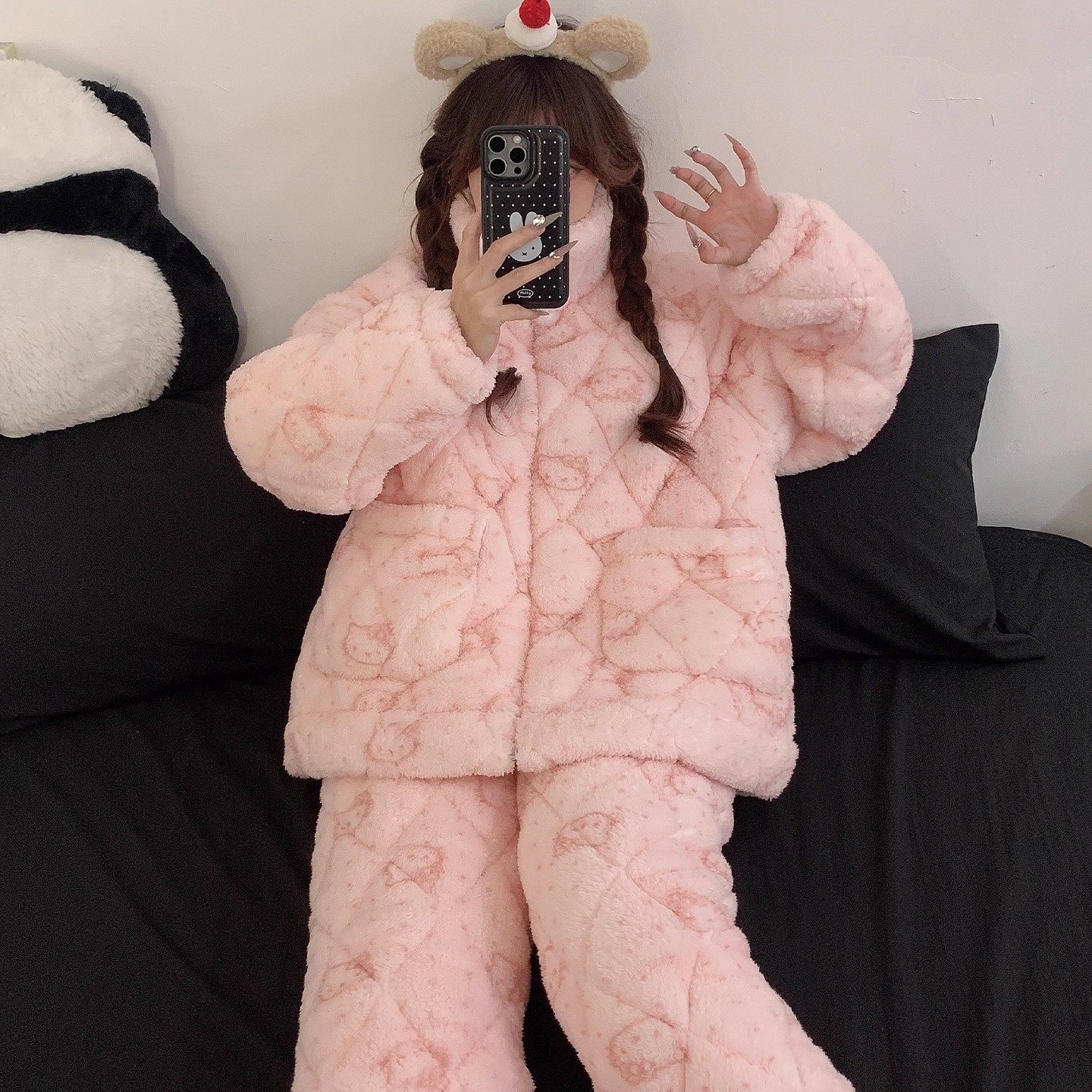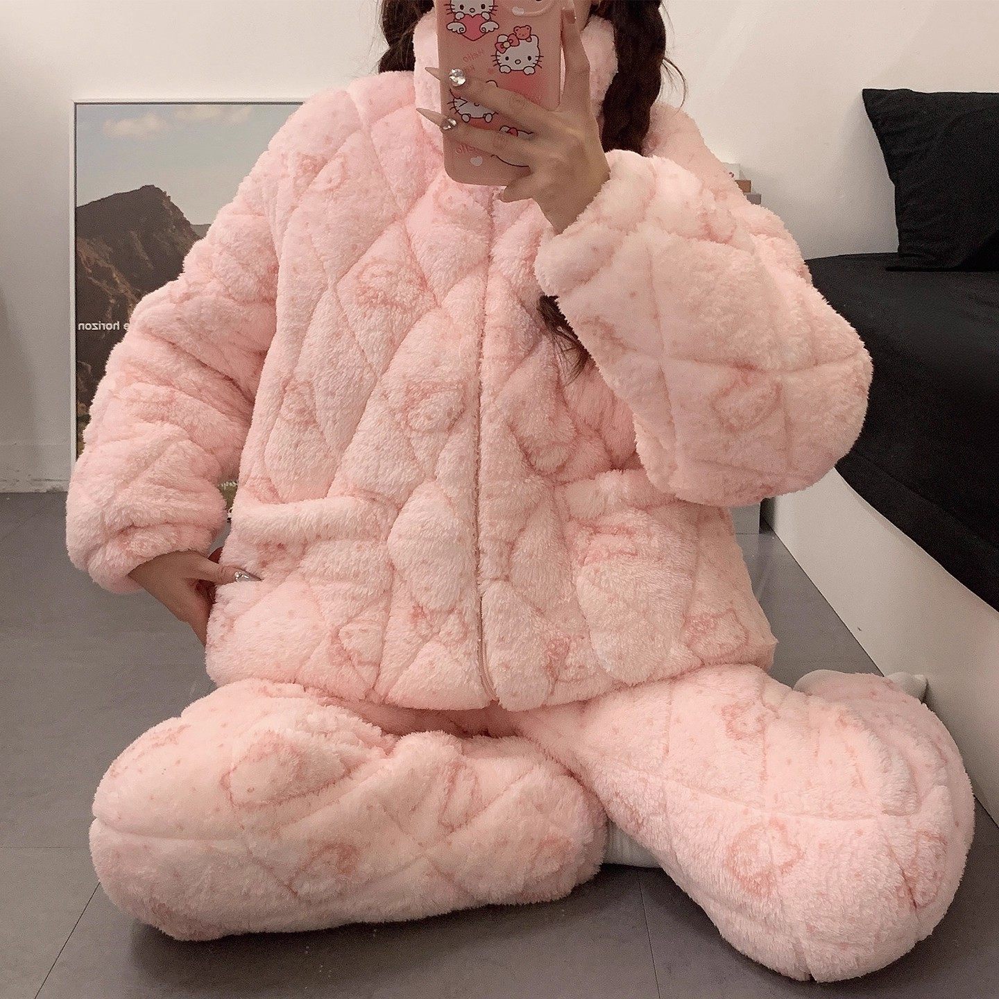 睡衣女秋冬季加绒加厚三层夹棉2025新款珊瑚绒冬天家居服可外穿