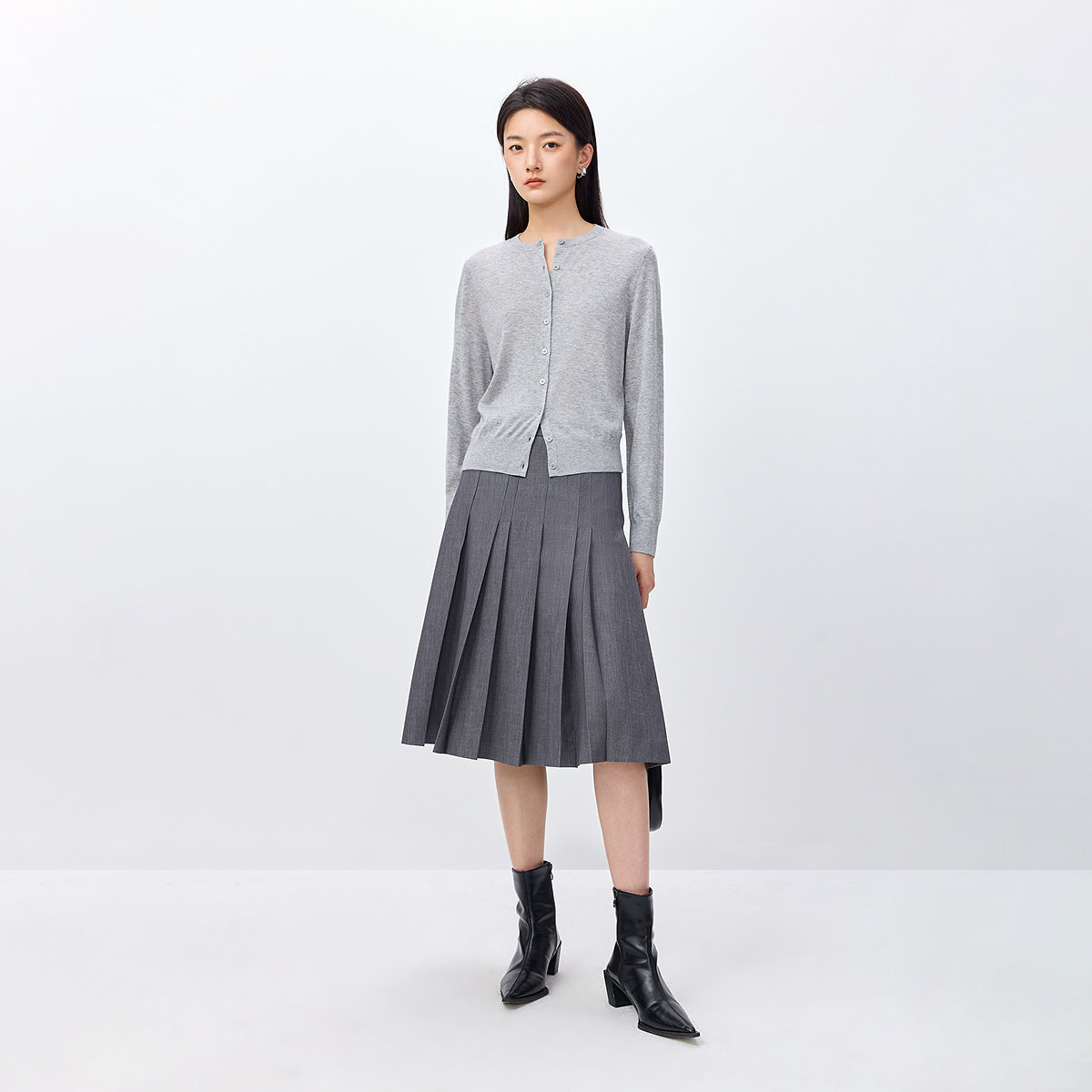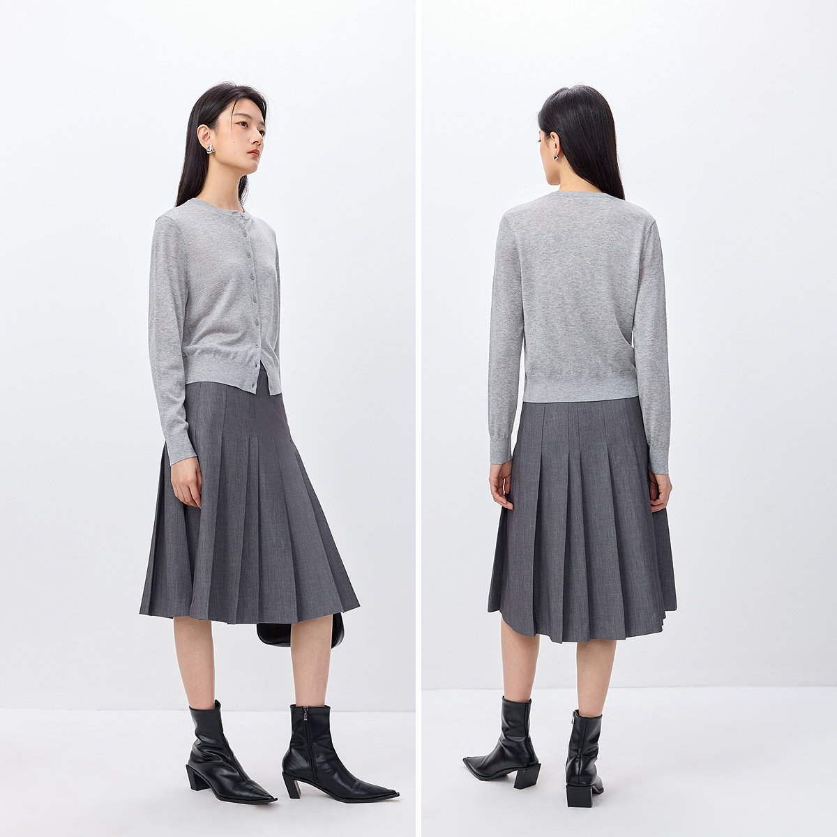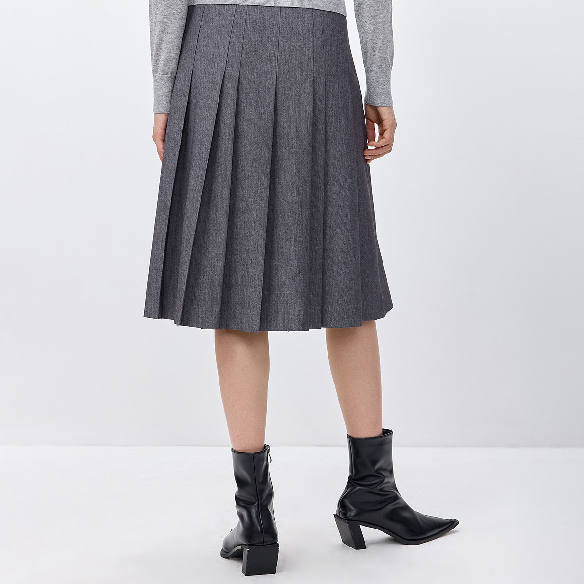 LILY2026春新款格雷系休闲气质通勤灰色百褶裙A字半身裙中长款女
