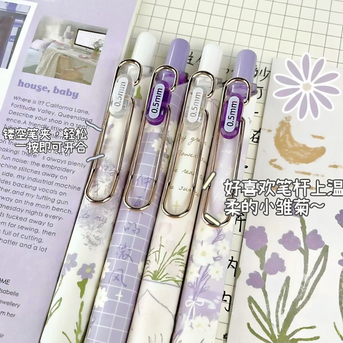 小雏菊系列不起茧按动笔黑色水笔软握小学生初中生限定ins高颜值学生葫芦头速干刷题中性笔笔0.5碳素黑笔书写