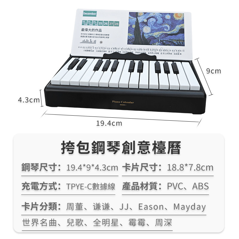 25键钢琴台历万年历可弹奏JAY俊杰五月天泰勒挎包送男女生日礼物