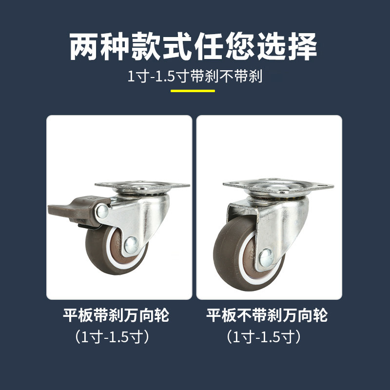 1寸1.5寸2寸平板万向轮办公柜橡胶脚轮滚轮轱辘推车轮子家具滑轮