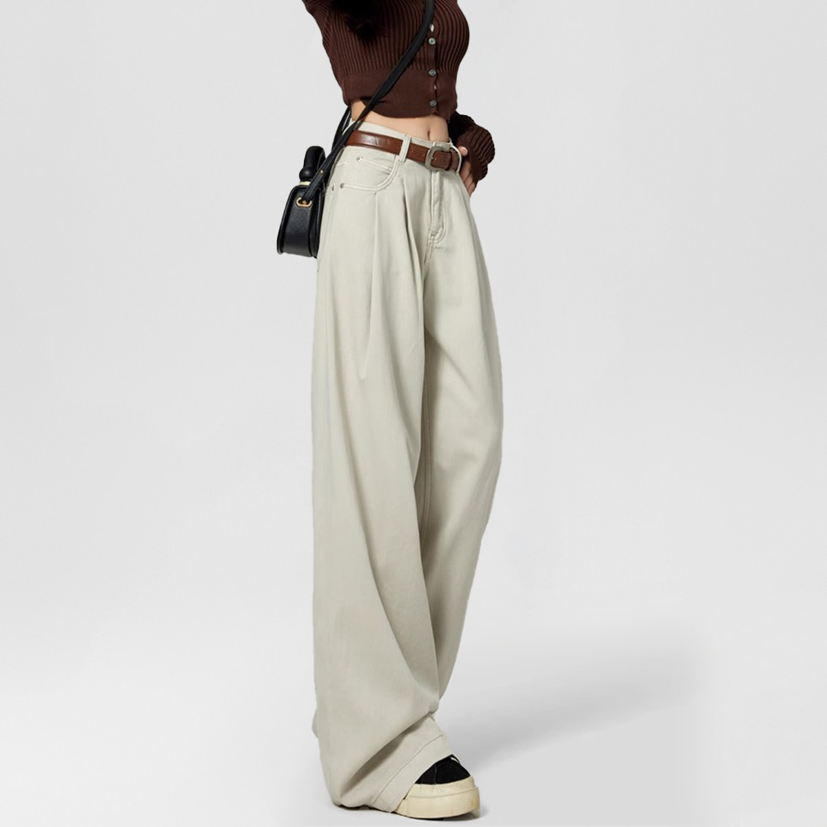 one more2026年文墨浅色职场工装裤女秋季时尚休闲裤百搭老爹韩版