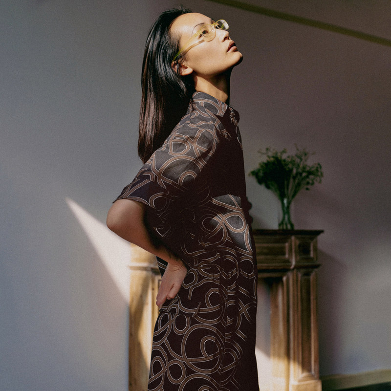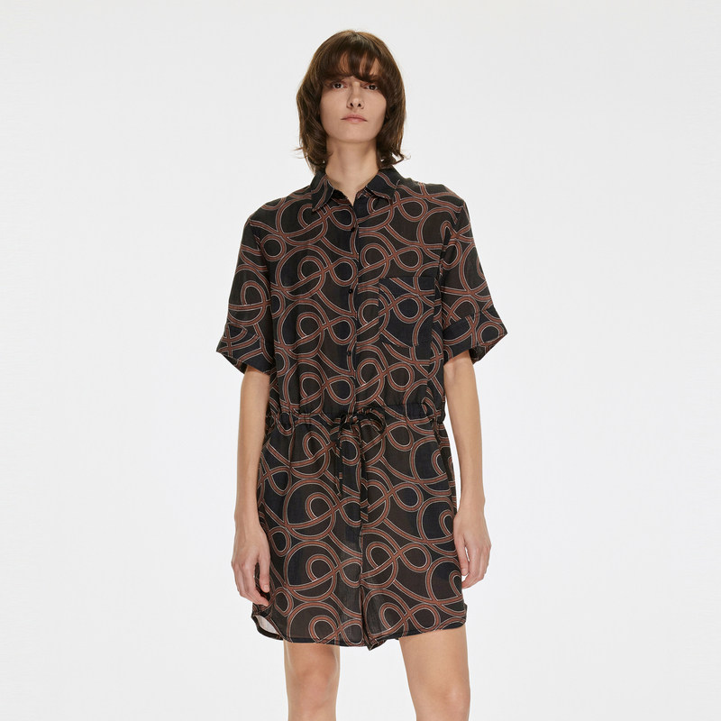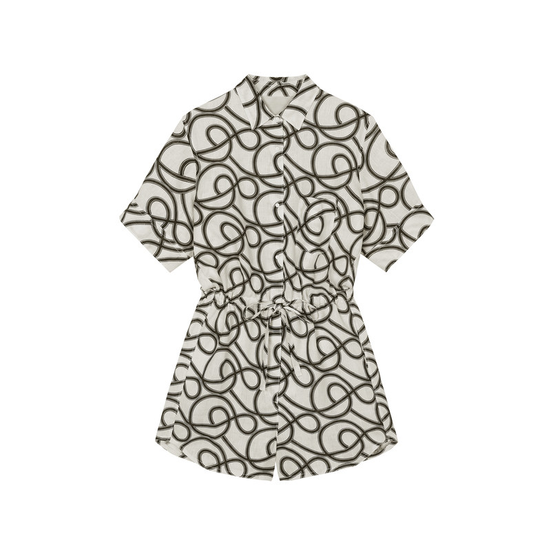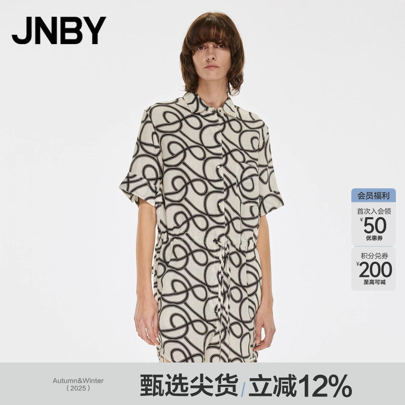 JNBY/江南布衣折扣春夏音符印花连体裤女宽松翻领连体衣收腰系带