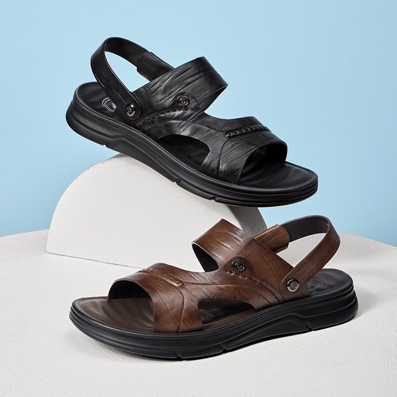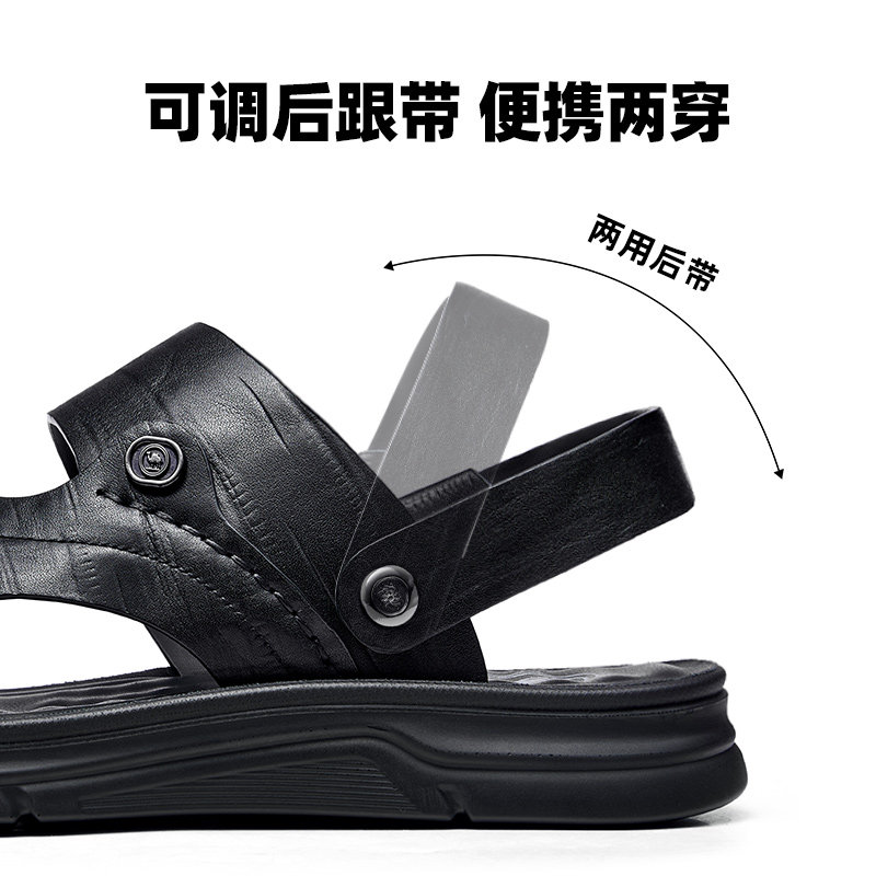 啄木鸟沙滩鞋男士头层牛皮牛筋底凉鞋真皮休闲防滑两用爸爸凉拖鞋