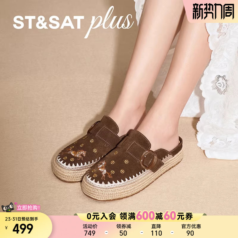 星期六2026春季包头懒人鞋舒适休闲圆扣装饰复古半拖鞋SSE1114095