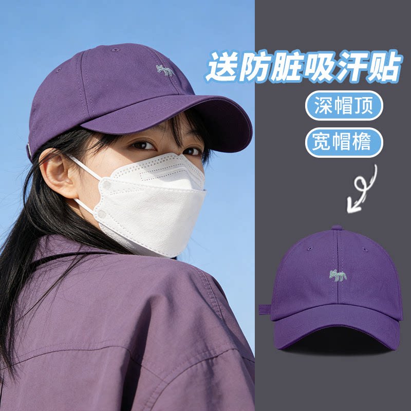 小狐狸刺绣棒球帽女加大加深宽檐显脸小紫色鸭舌帽夏大头围遮阳帽