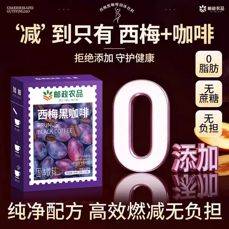 邮政西梅黑咖啡速溶无蔗糖0脂肥正品提高代谢暴加强版瘦减旗舰店