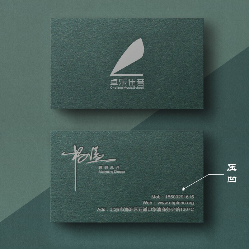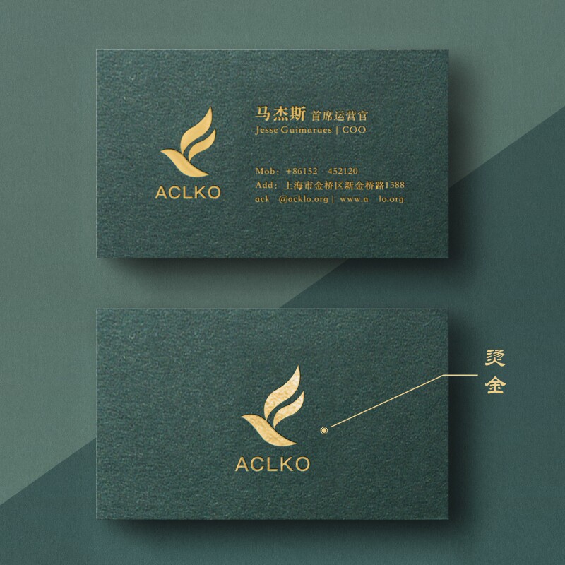 高档商务艺术墨绿色棉纸名片设计烫金压凹印刷订定做制作打印卡片
