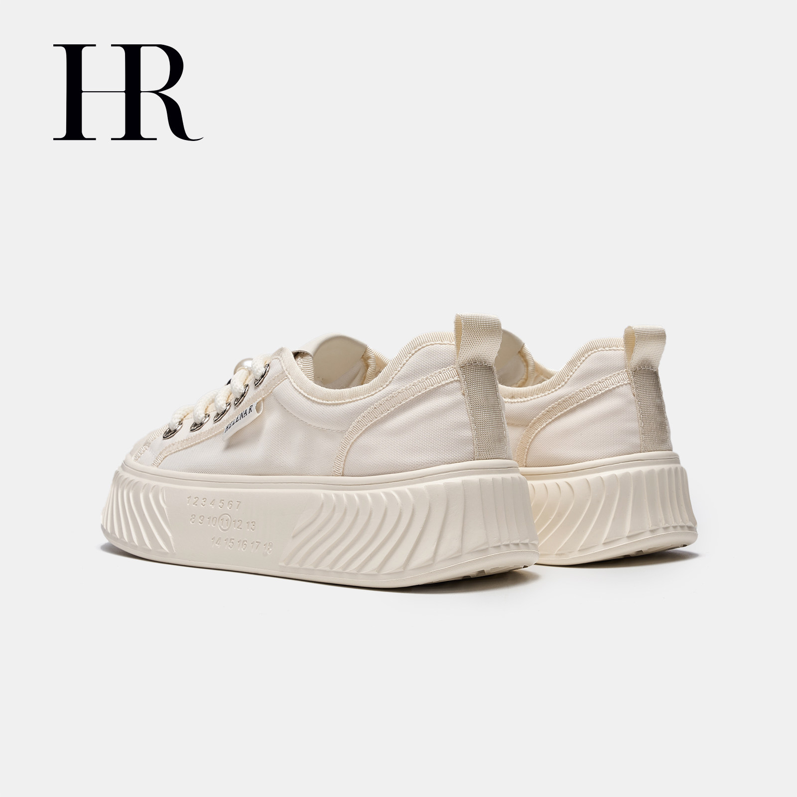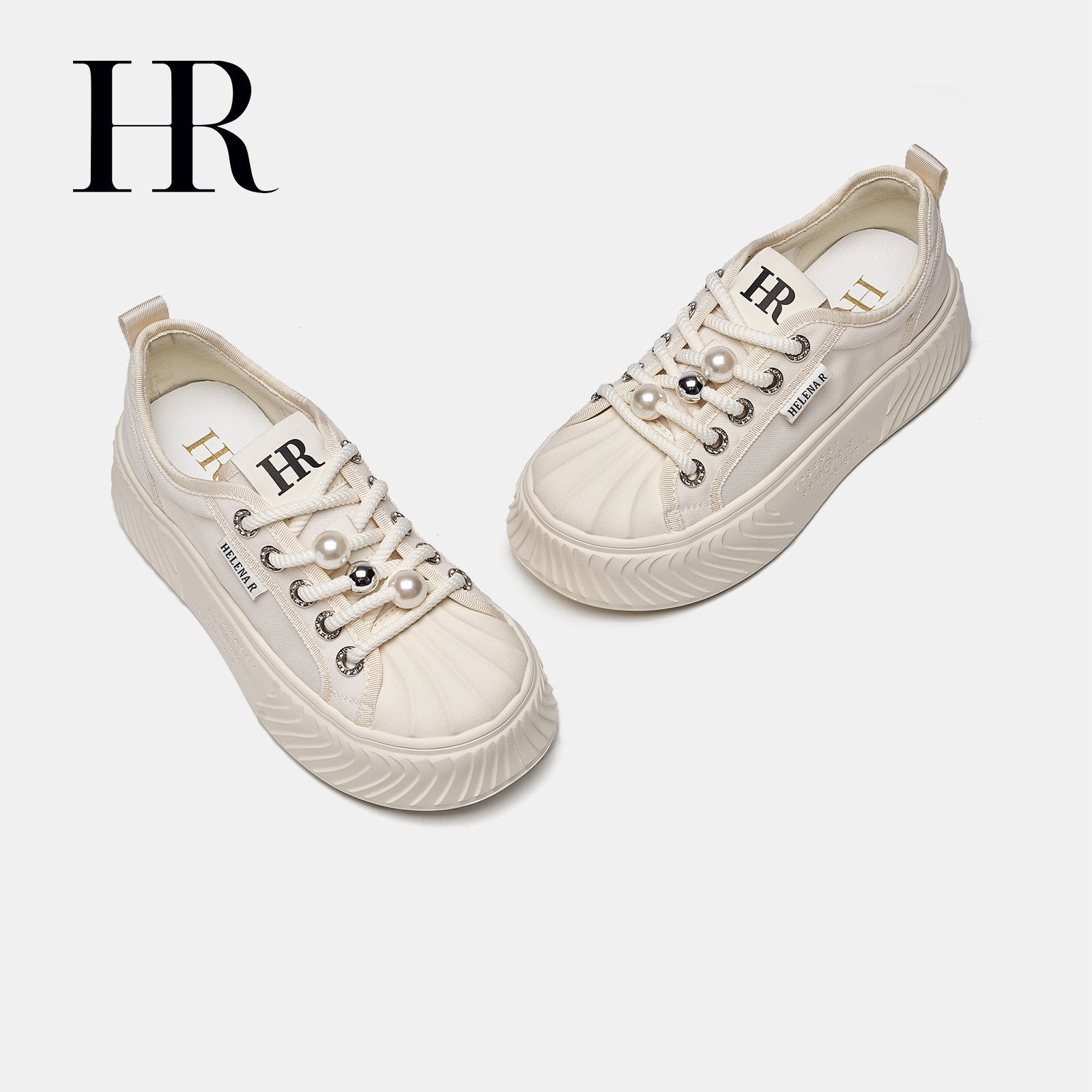 HR赫莲娜女鞋子2026年春季新款帆布鞋珍珠系带轻便米色饼干鞋百搭