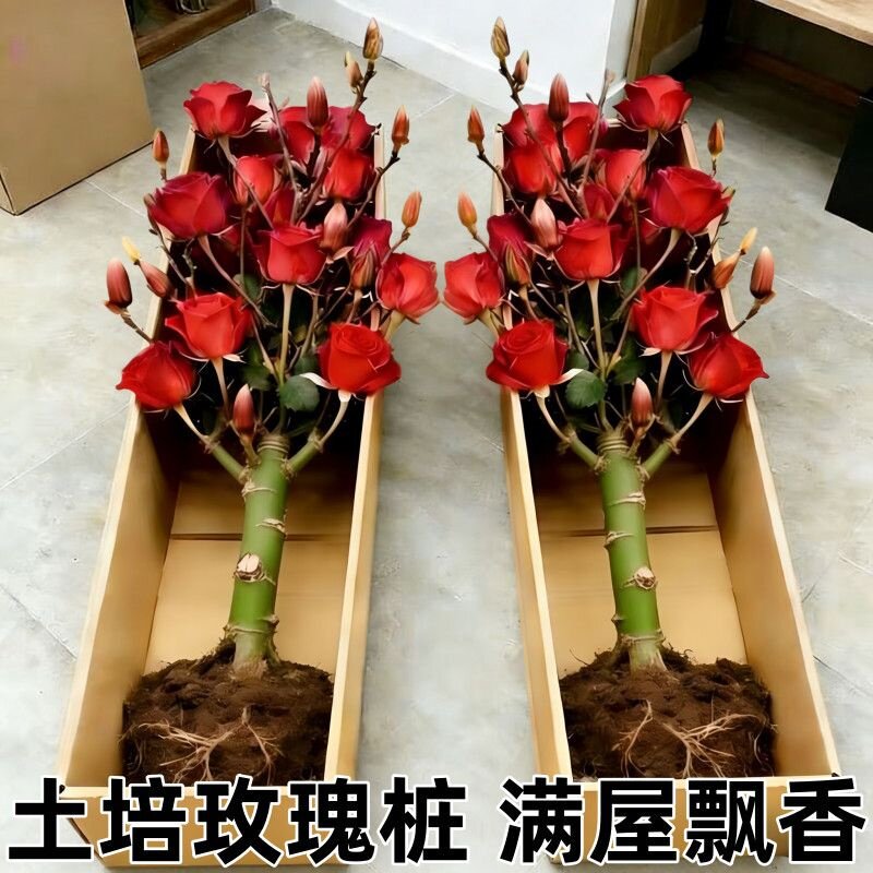 【土培玫瑰花】现挖现发老桩香水玫瑰四季开花盆栽玫瑰室内阳台