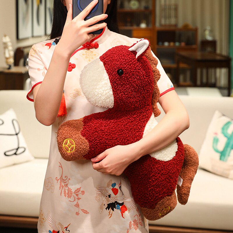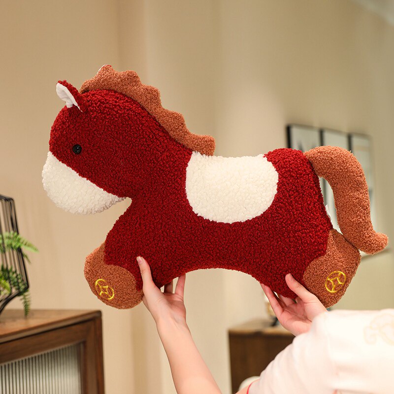 国风元宝小马抱枕毛绒玩偶客厅沙发装饰摆件汽车载靠枕送礼物马年