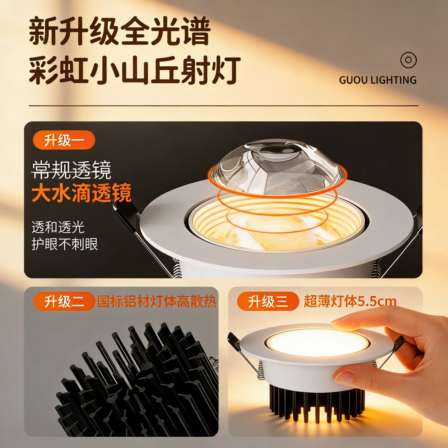 2026彩虹双眼皮小山丘射灯背景墙led嵌入式客厅cob无主全光谱防眩