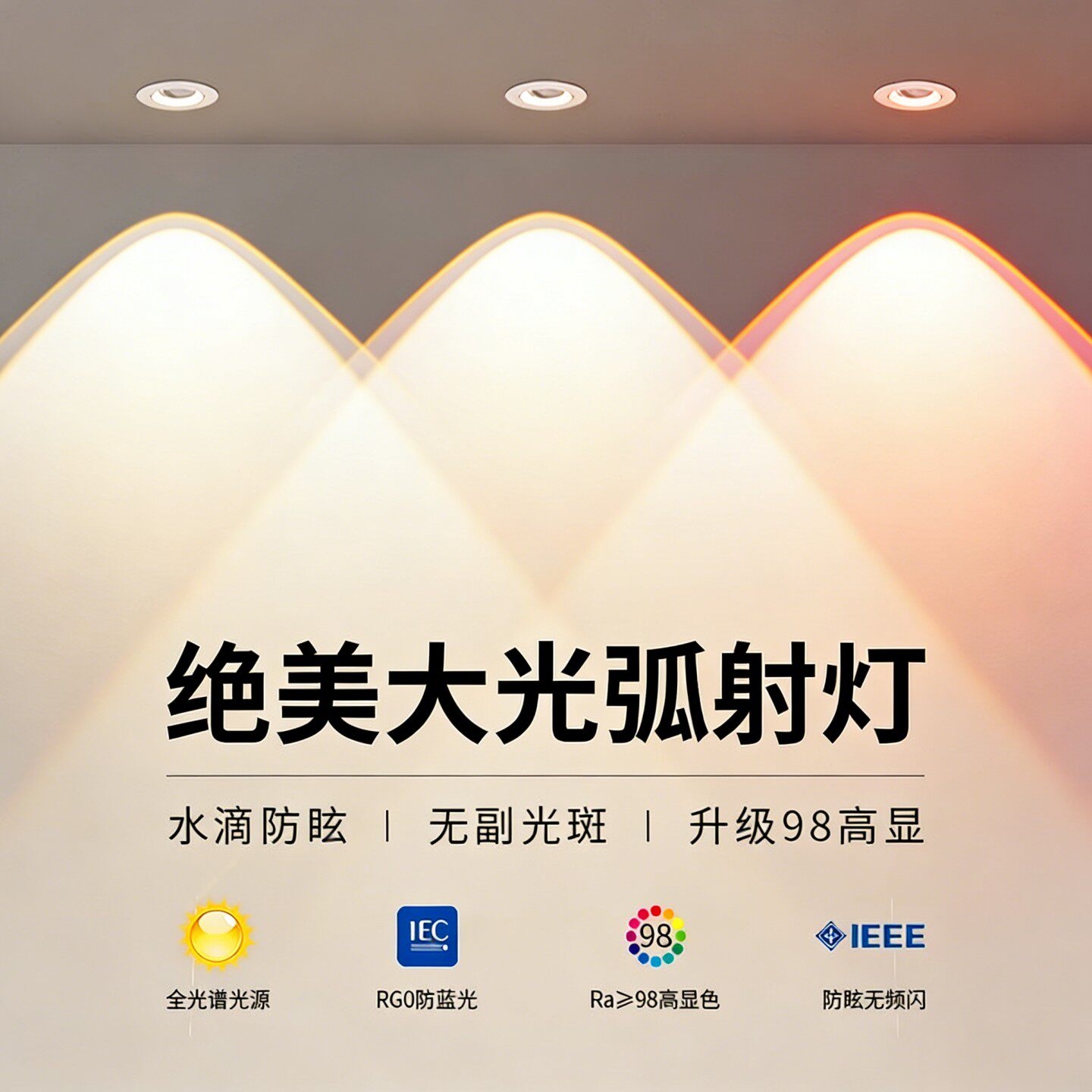 隐形弧面无边框护眼射灯小山丘嵌入式客厅筒射灯无主灯防眩洗墙灯