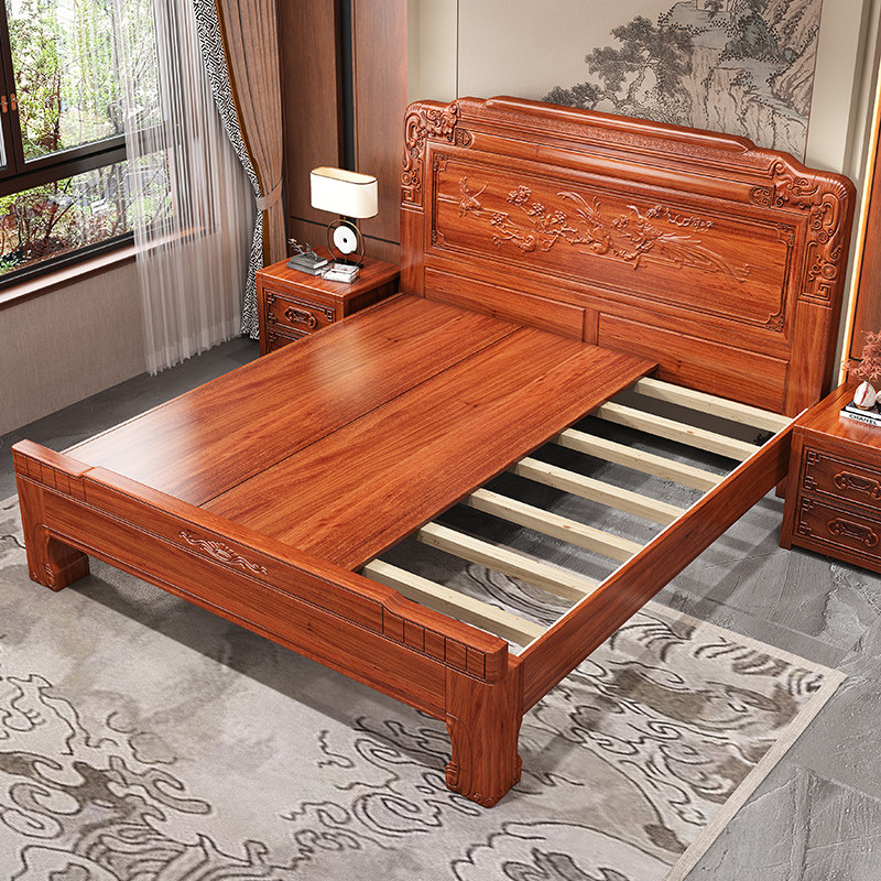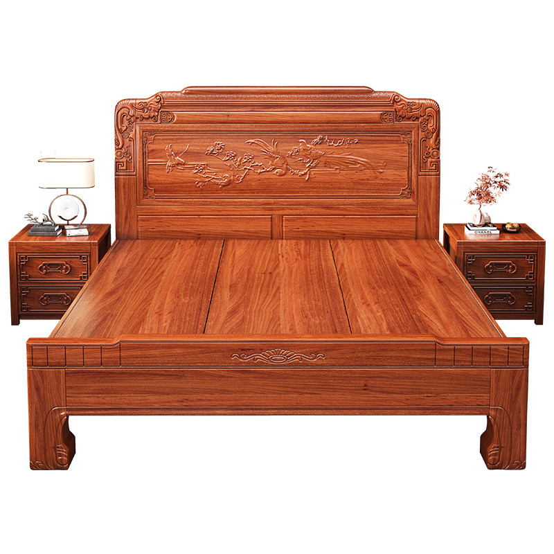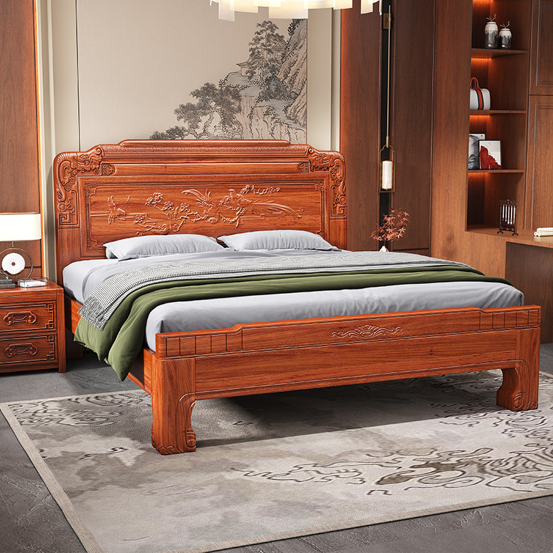 明清中式古典雕鲤刻花实木床老虎脚实木床实木加厚床