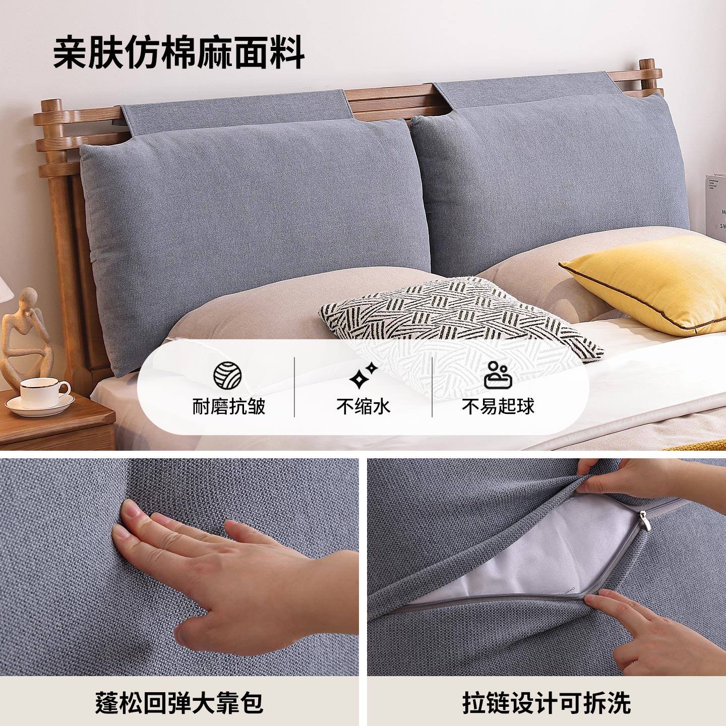 床全实木软包床现代简约家用卧室双人床1米5橡胶木床1米8单人床架