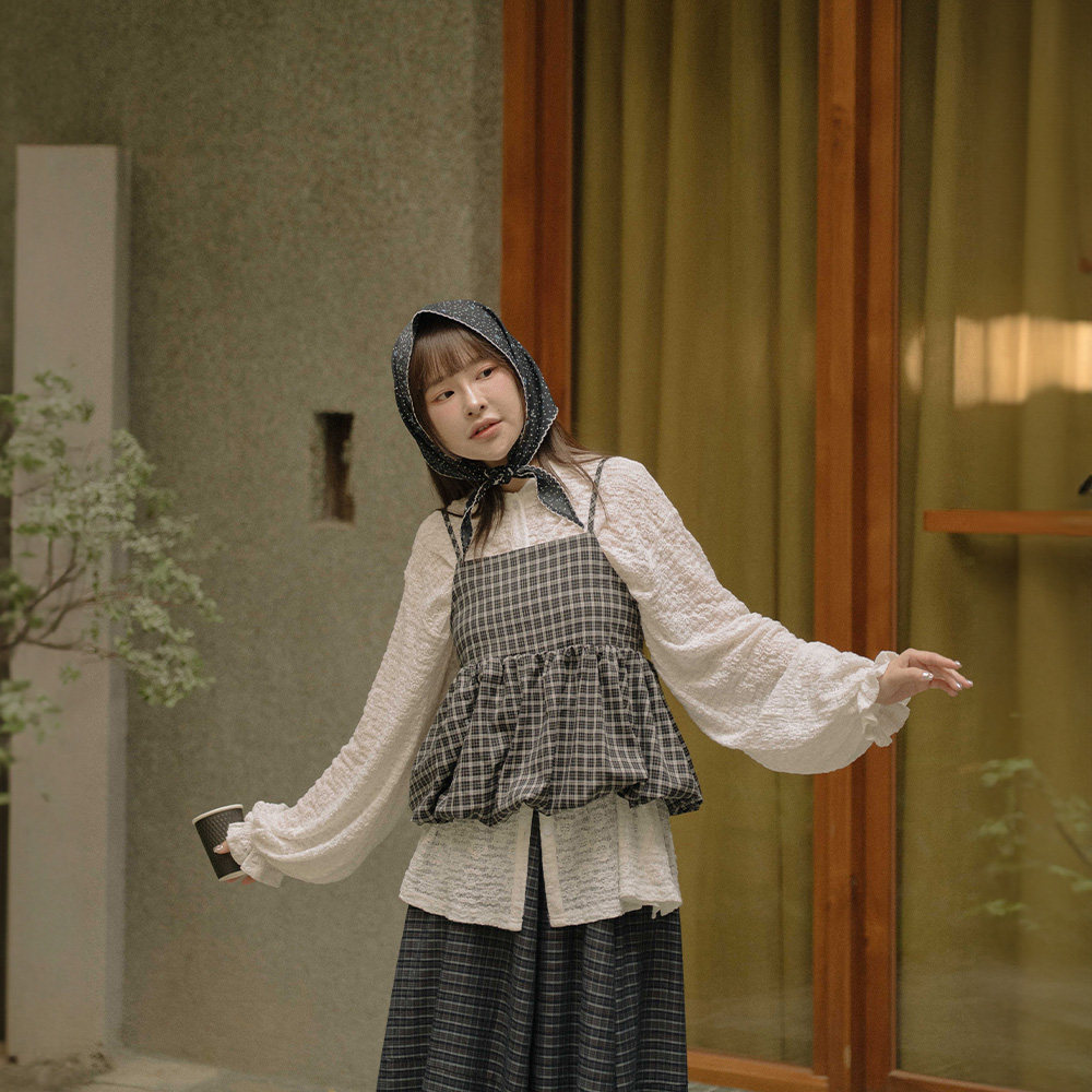 QUEENSHOP 2026春夏新品女装格纹花苞造型细肩罩衫背心01099372