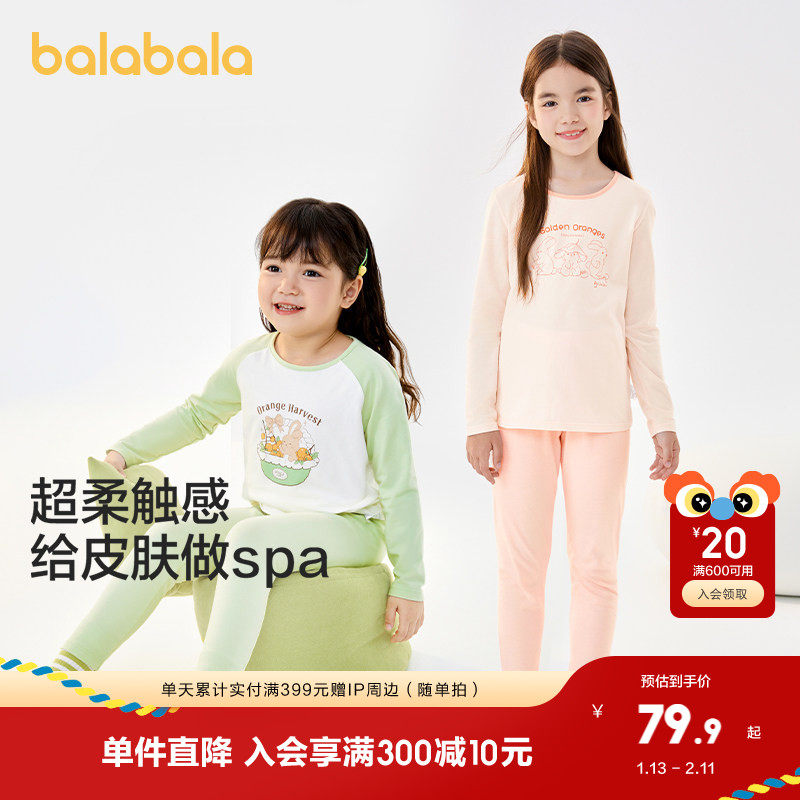 巴拉巴拉女童内衣套装棉秋季新款薄小童打底棉毛衫宝宝中大童睡衣