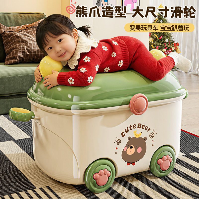 儿童玩具收纳箱家用卡通大容量整理箱宝宝衣服零食积木储物箱带轮