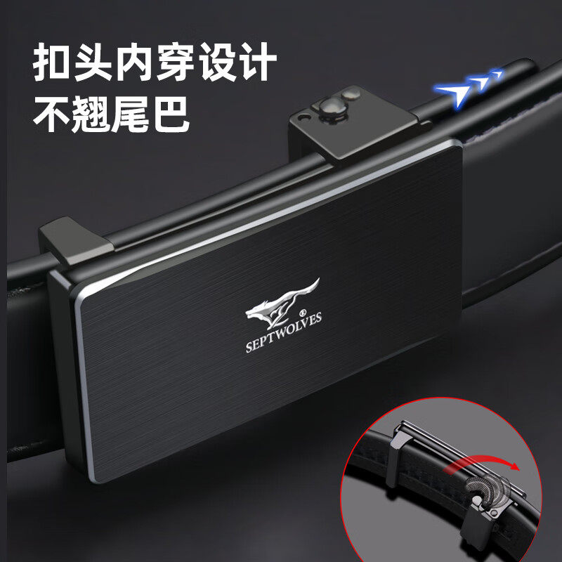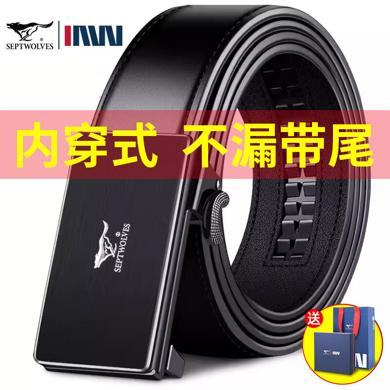 七匹狼皮带男真牛皮自动扣内穿式男士腰带裤带生日礼物送男友老公