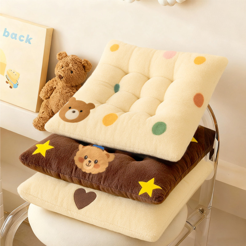 可爱坐垫咖色熊头加厚保暖防滑底椅垫多款可选