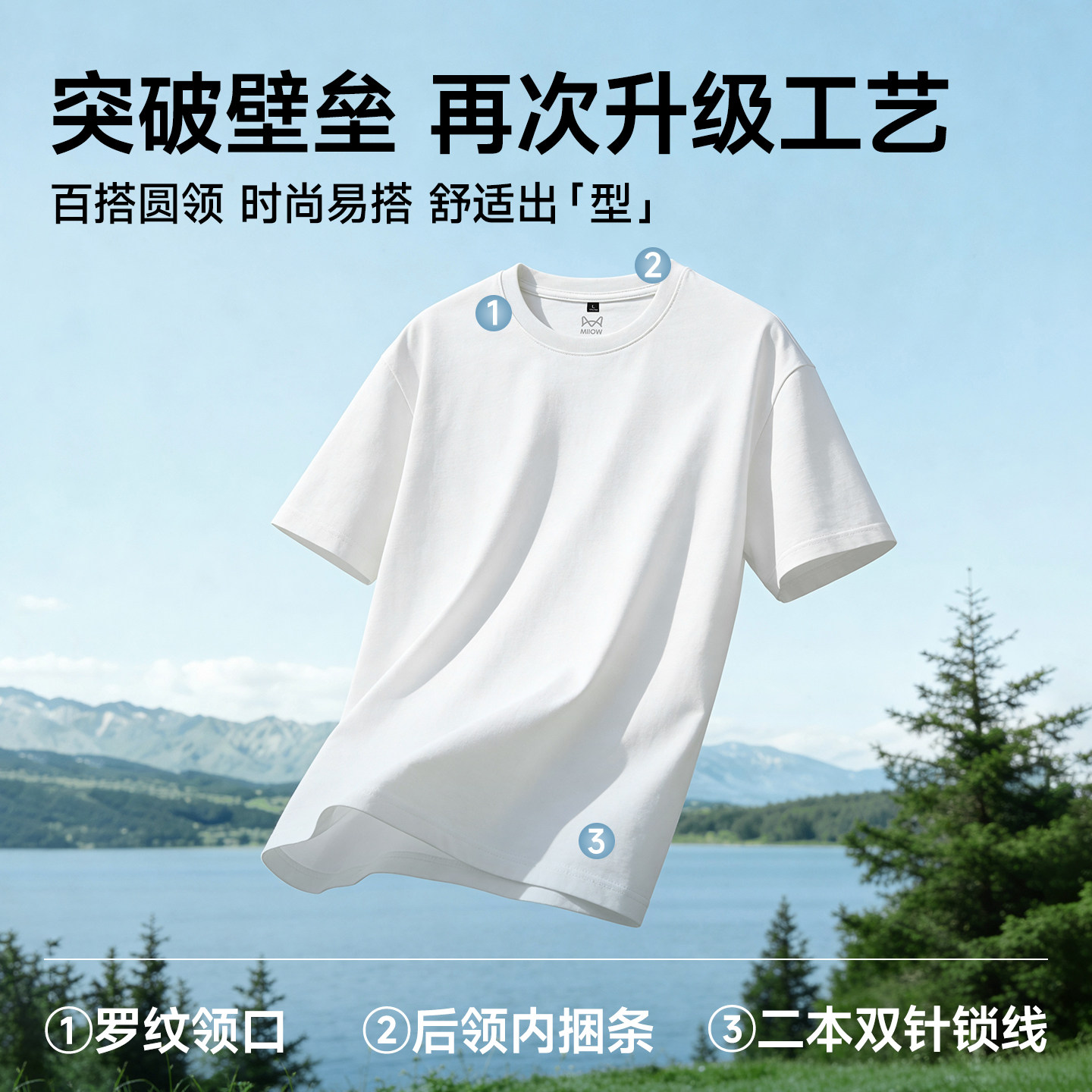 猫人新款纯棉宽松短袖T恤男重磅多色百搭简约高级半袖2026年春夏Y