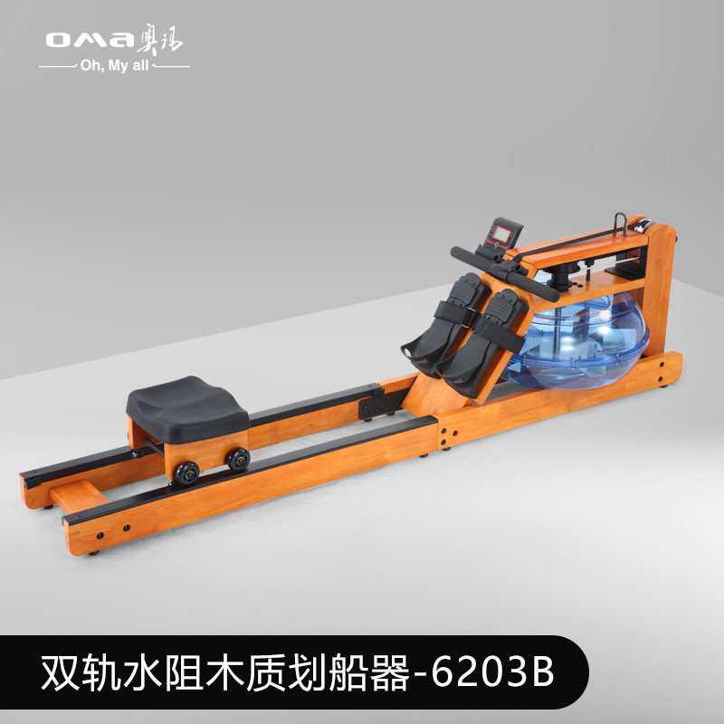 奥玛OMA纸牌屋家用水阻划船机划艇商用健身器材木质划船机6203B