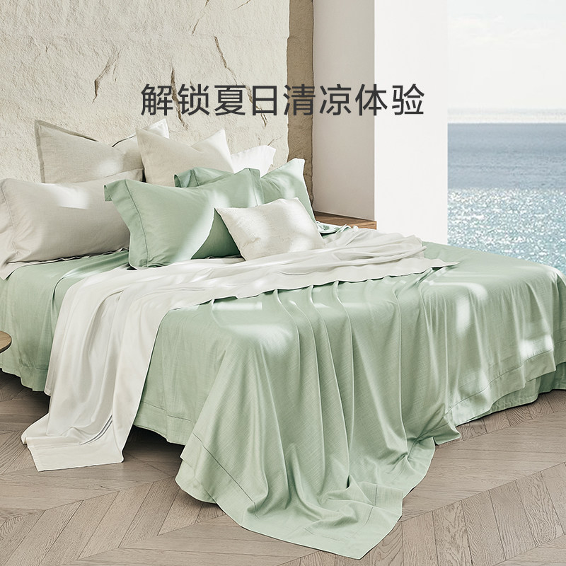 罗莱家纺床上用品春夏简约天丝亚麻清凉床单被套1.8m床四件套床品