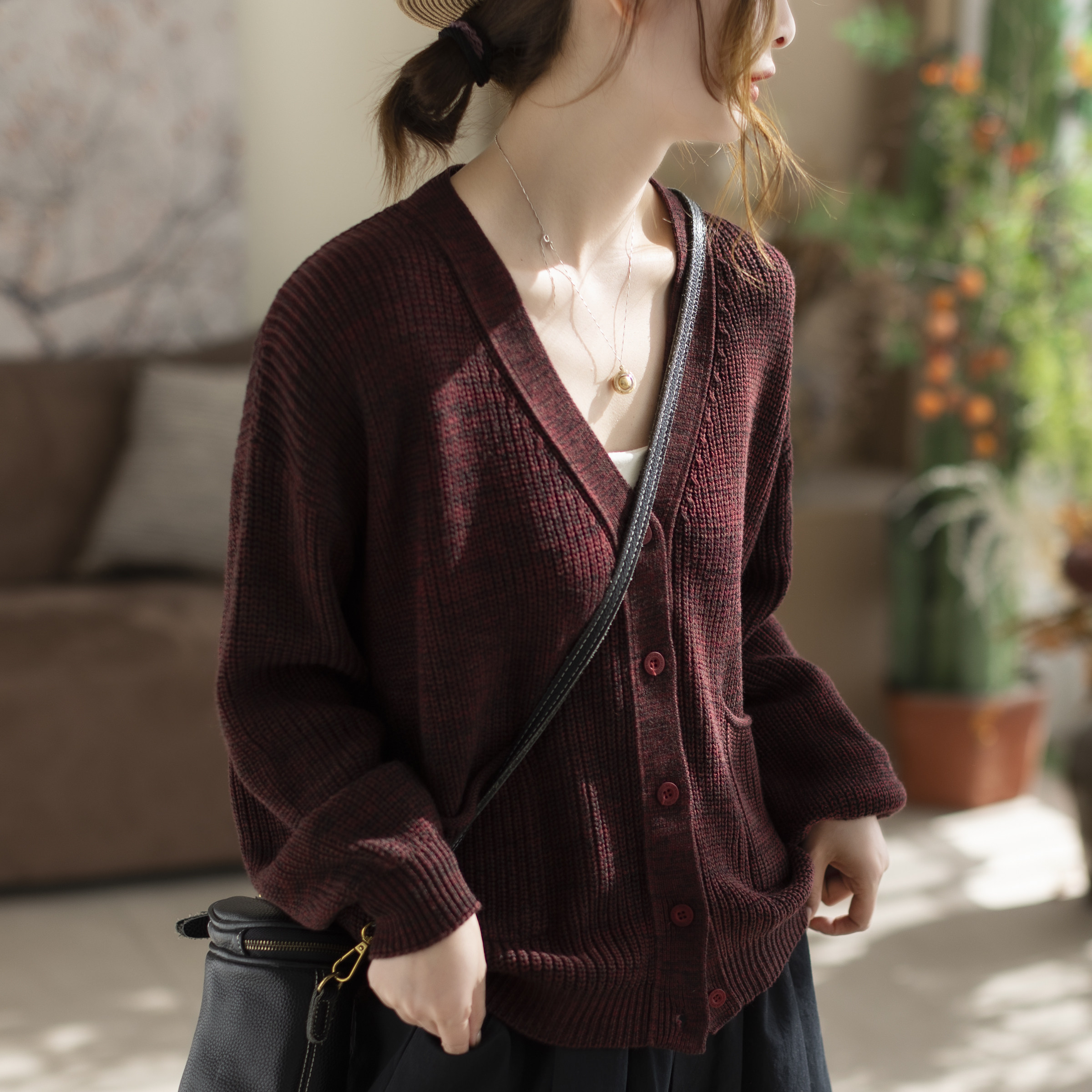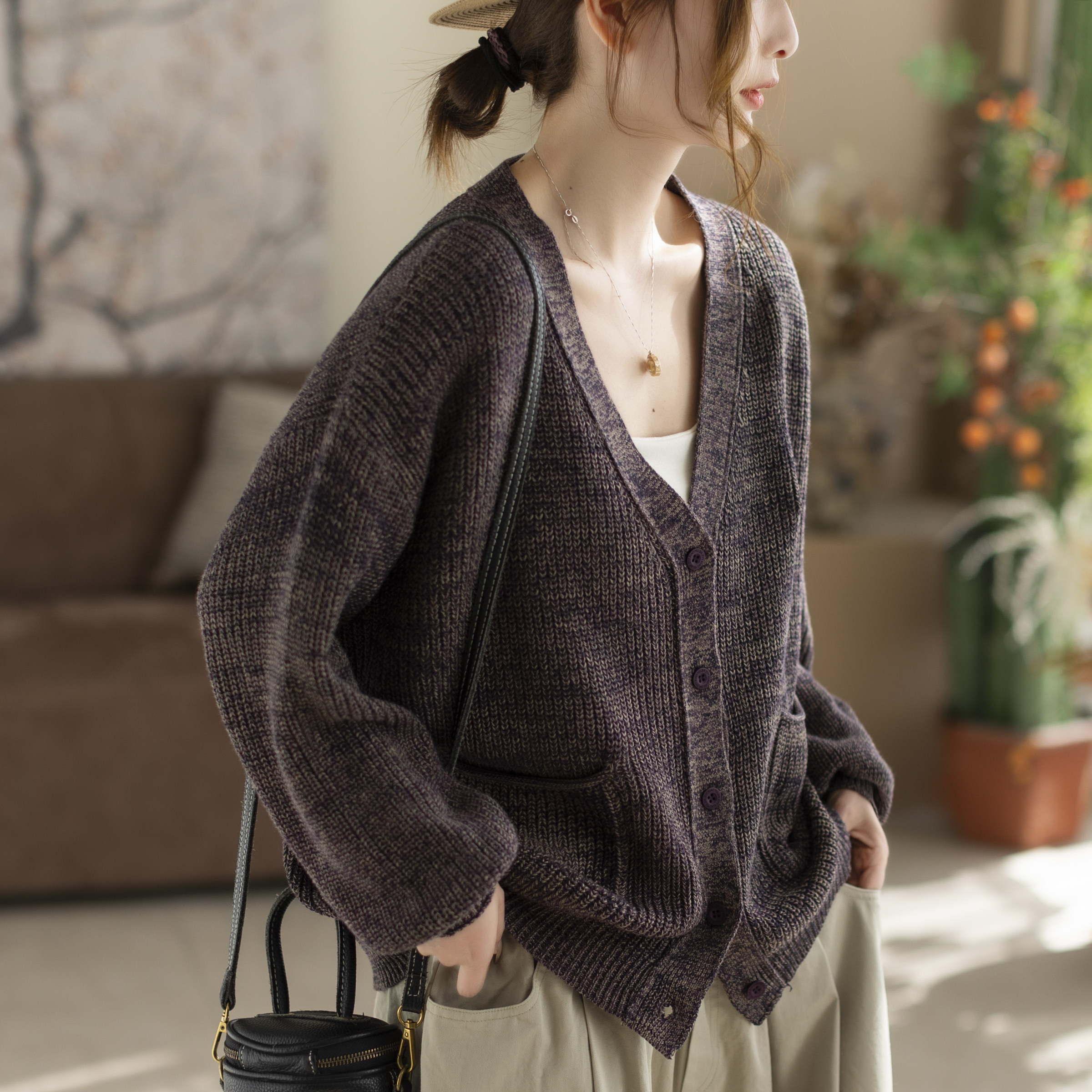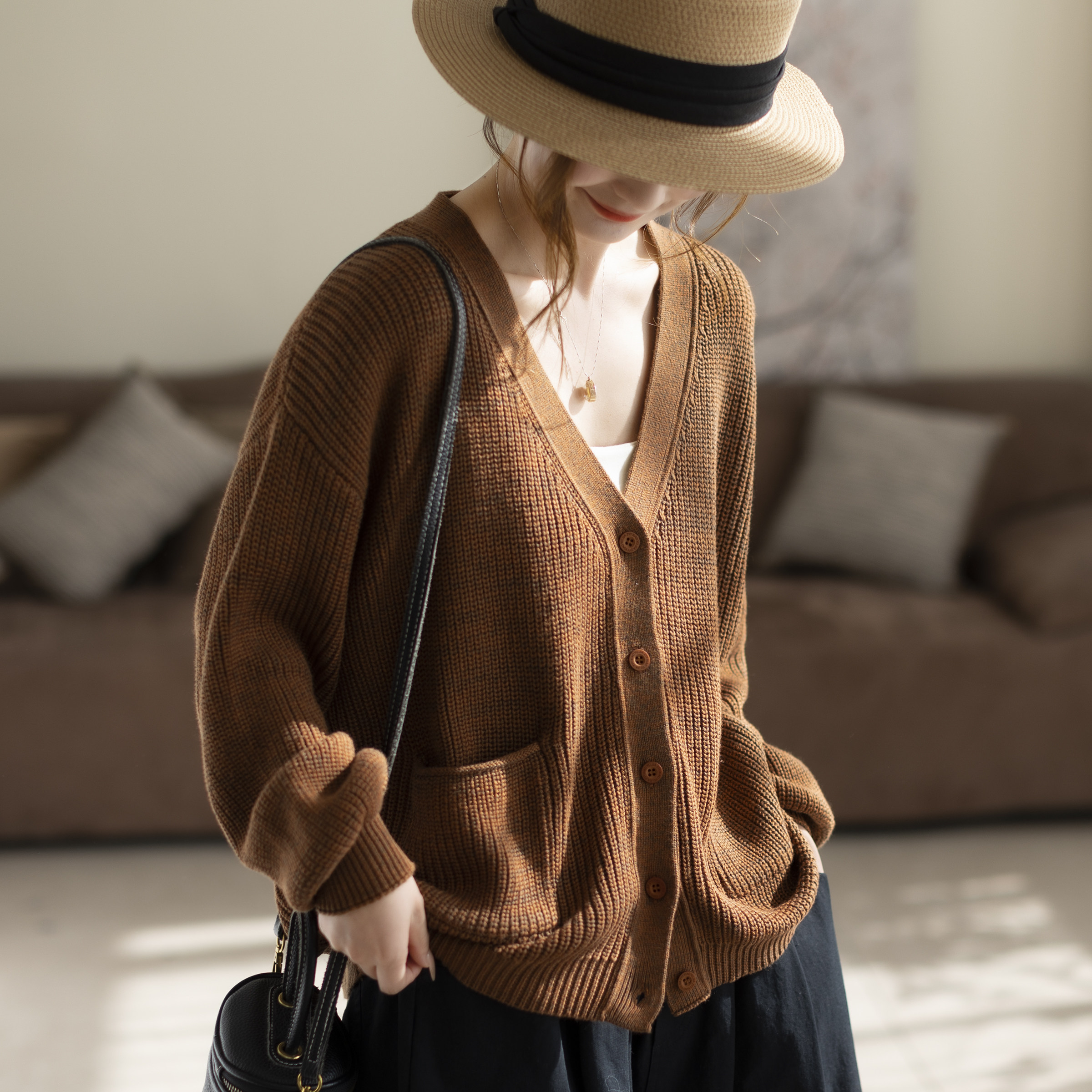 2026新款女装宽松针织开衫纯棉春秋外套纯色百搭圆领毛衣针织衫潮
