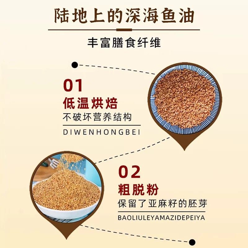 有机熟黄金亚麻籽粉纯天然代餐即食粉冲饮膳食纤维官方旗舰店正品