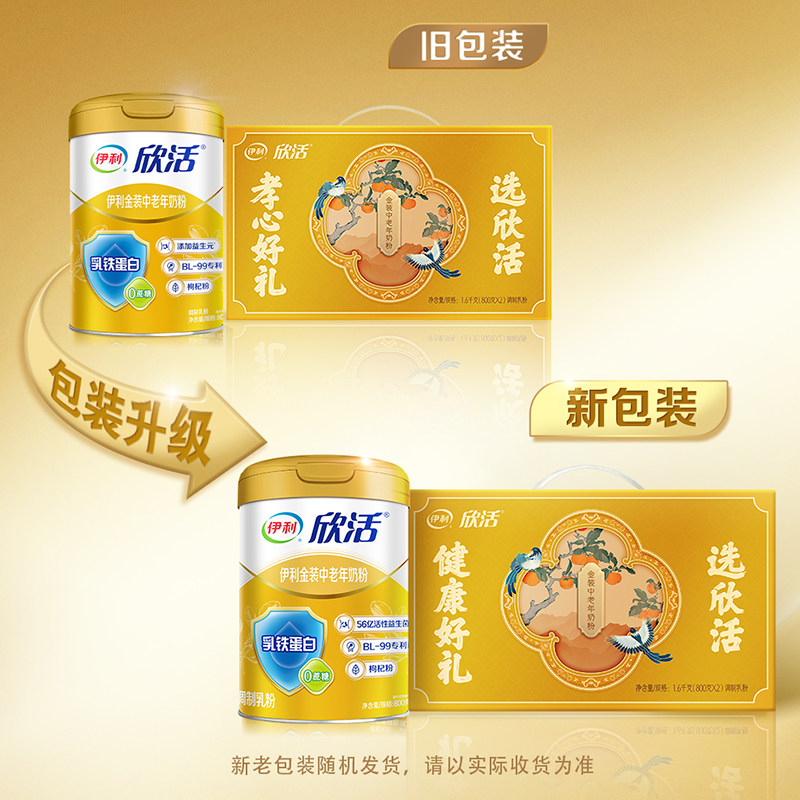 伊利旗舰店欣活中老年人营养奶粉800g金装高钙乳铁蛋白送礼正品