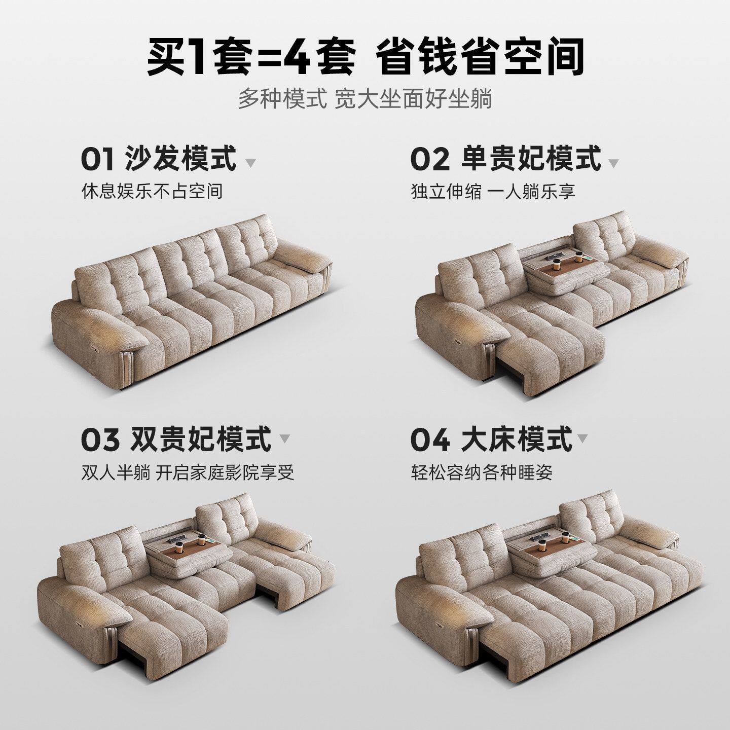 源氏木语零靠墙真皮沙发现代简约客厅多功能沙发家用伸缩电动沙发
