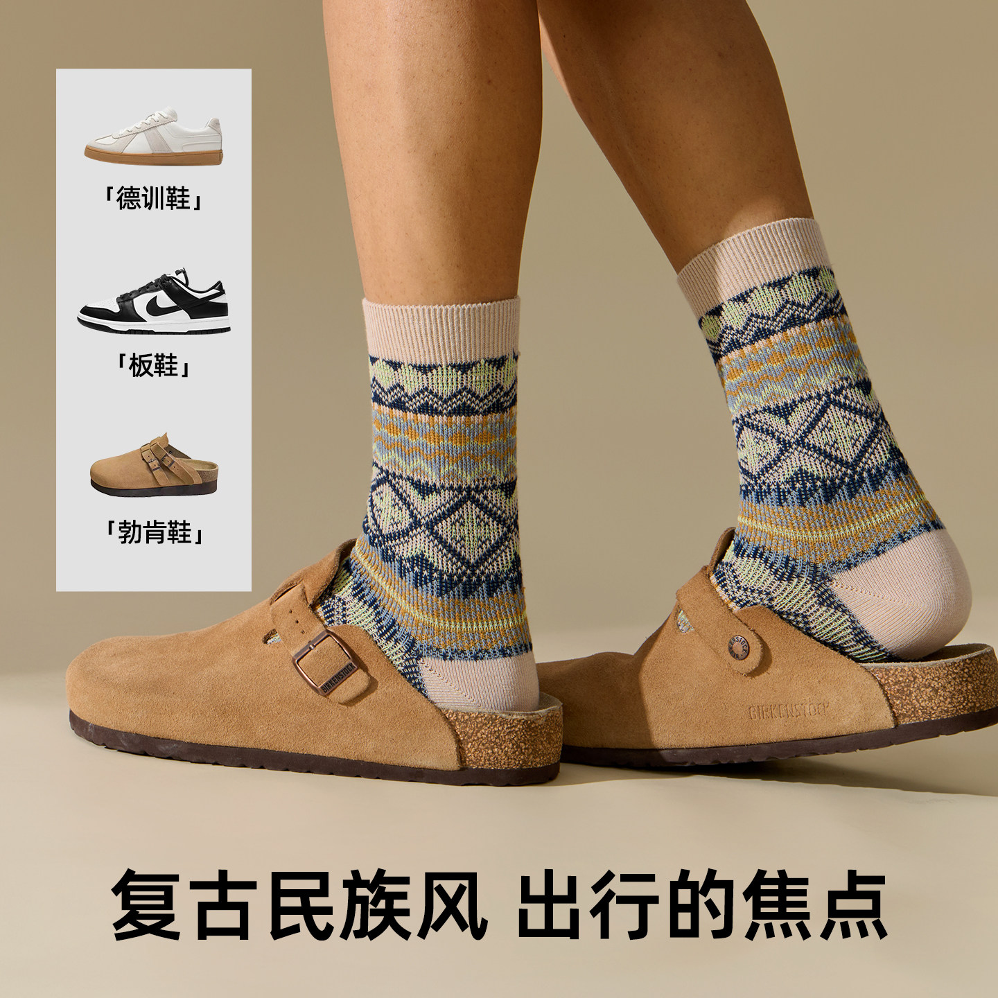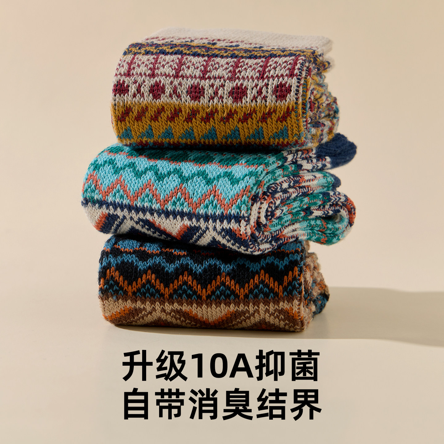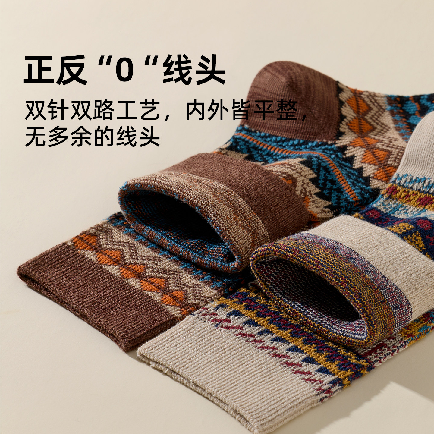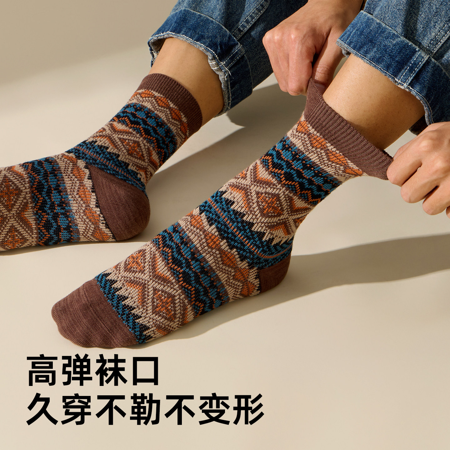 佐印男士袜子复古民族风中筒冬季纯棉纱线日系吸汗抗菌防臭男长袜