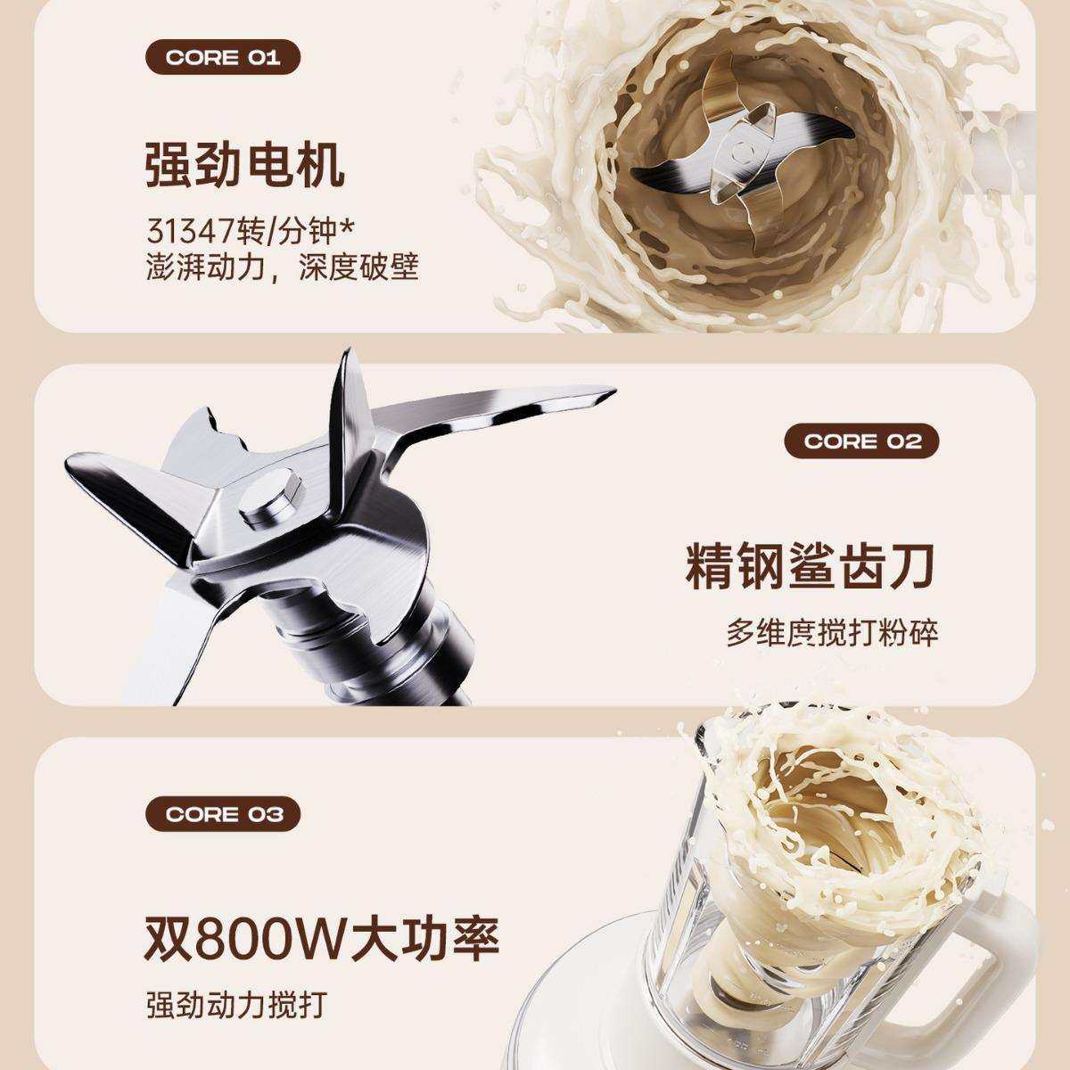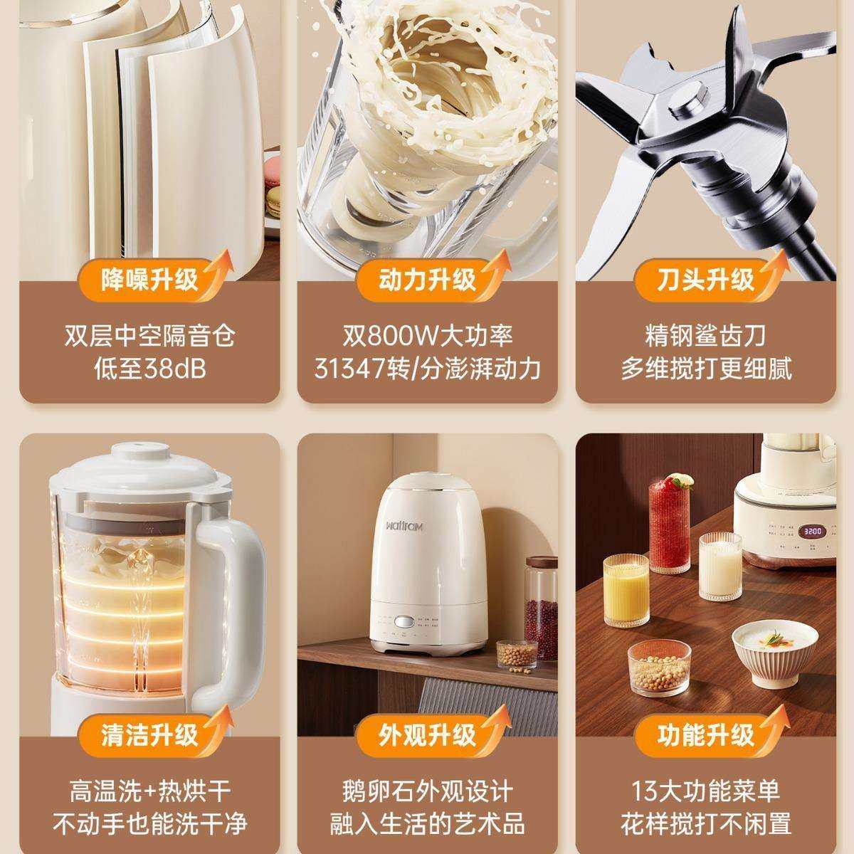 北欧沃朗鹅卵石破壁机家用全自动新款静低噪音小型料理榨汁豆浆M2