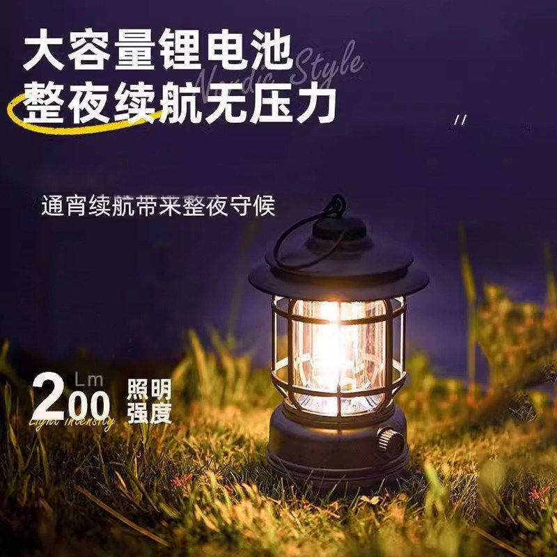 露营灯户外充电复古马灯营地野营氛围煤油手提摆摊帐篷灯装饰火焰