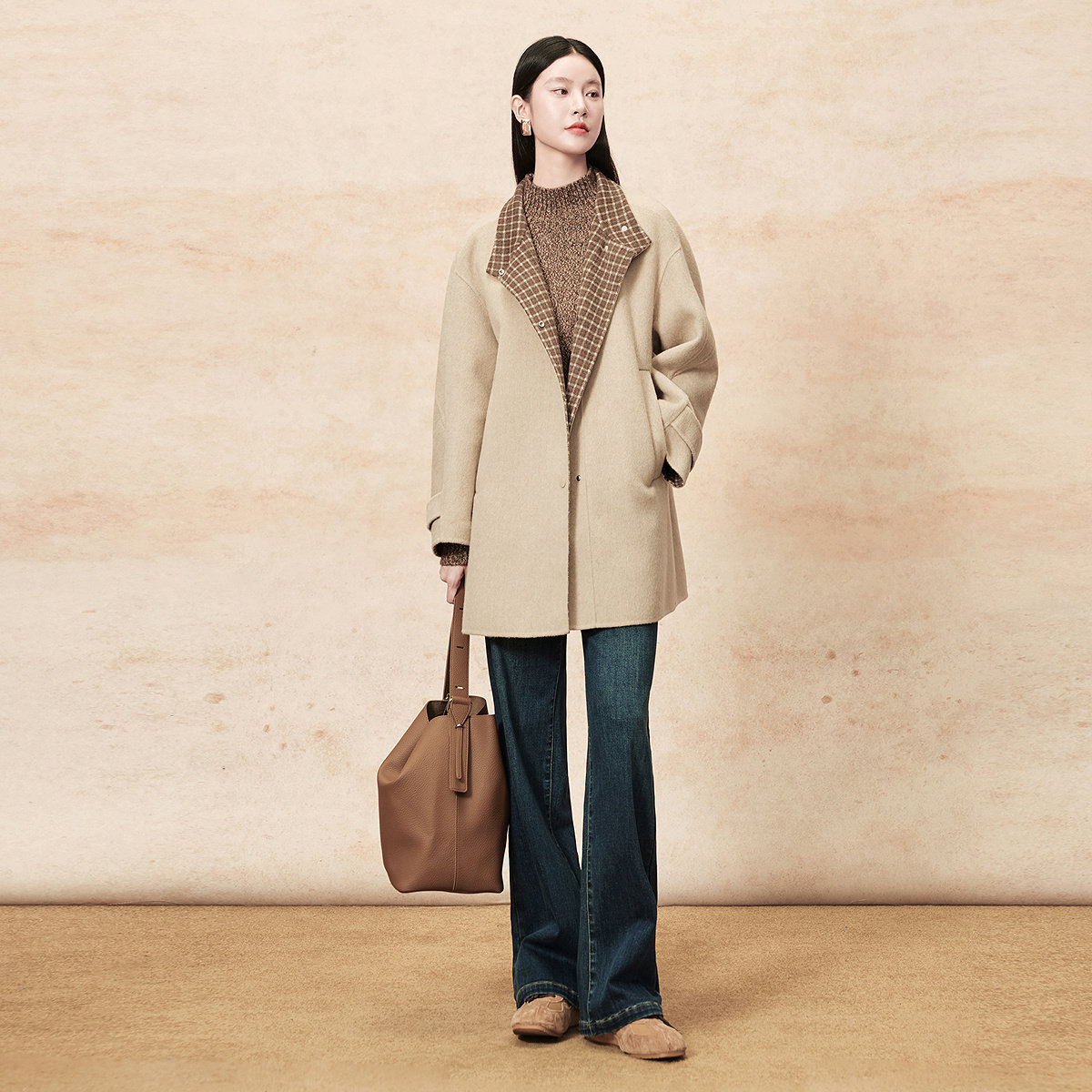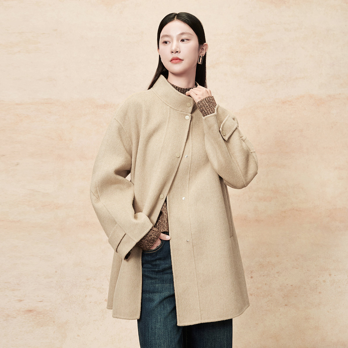 MPAM绵羊毛羊绒双面呢大衣时尚气质立领羊毛外套女