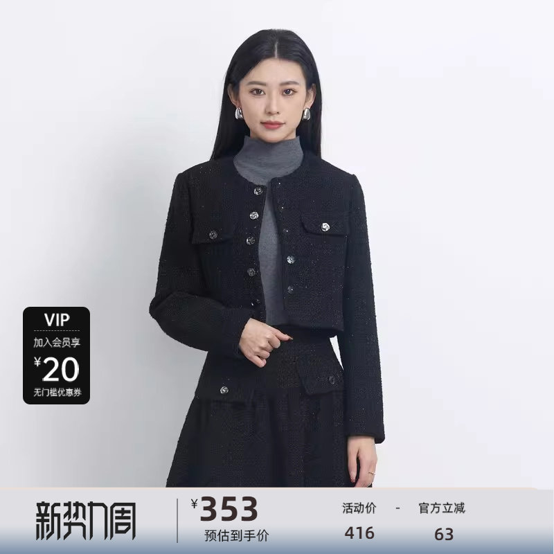 COCOBELLA静奢风珠片花纱毛呢外套短款廓形小香风西装WL507