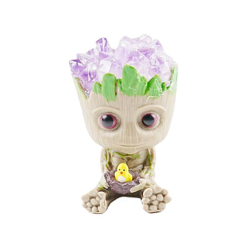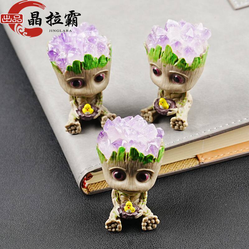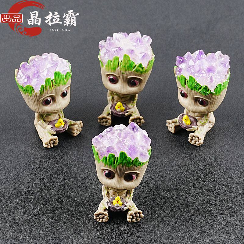 天然紫水晶格鲁特小树人摆件公仔手办模型桌面银河护卫队卡通搭配