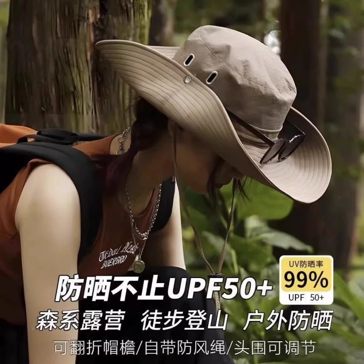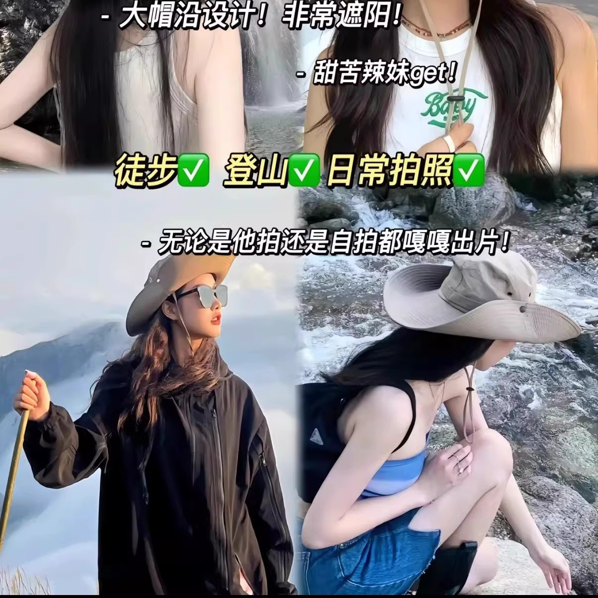 西部牛仔登山帽渔夫帽爬山徒步防晒帽女户外太阳男遮阳大帽檐帽子