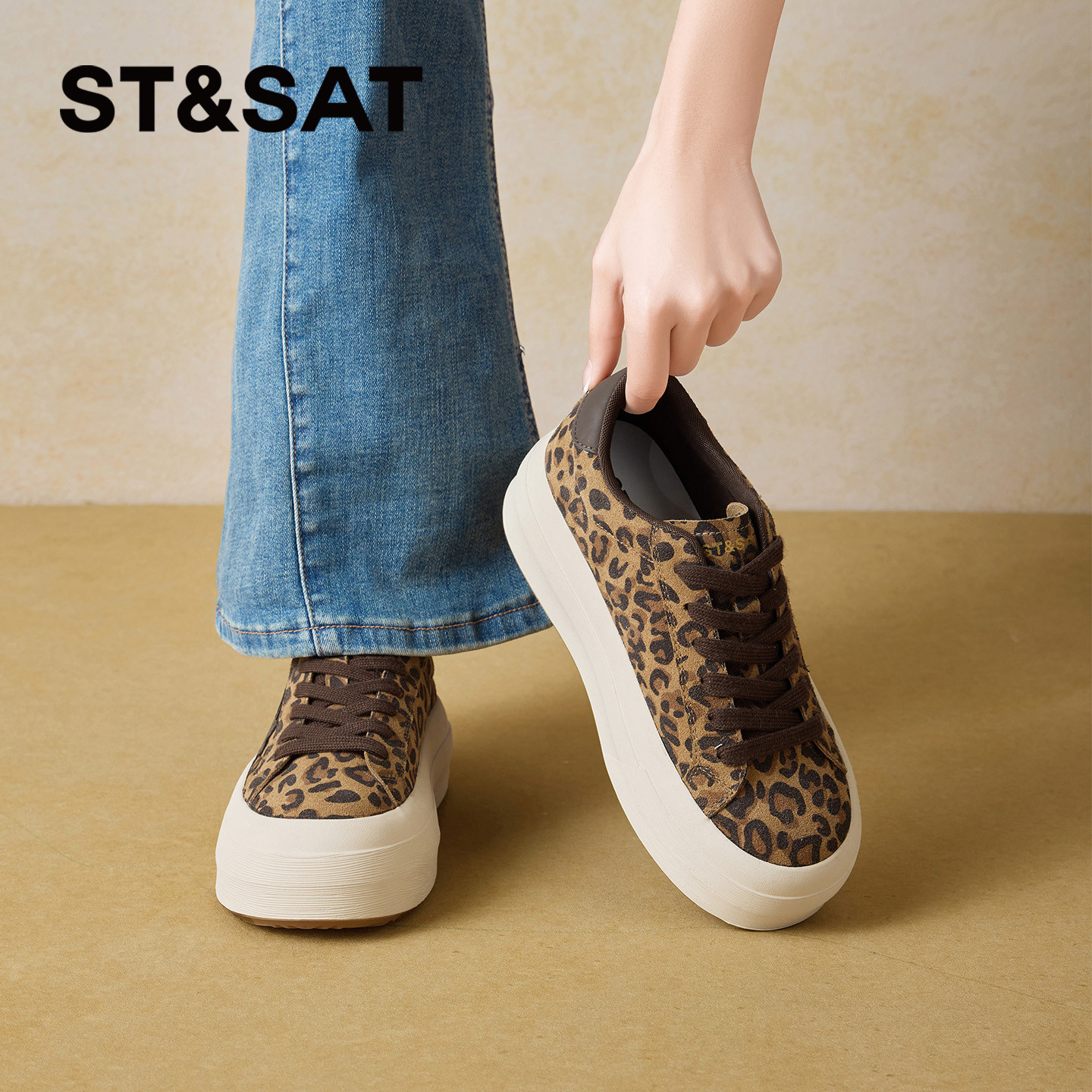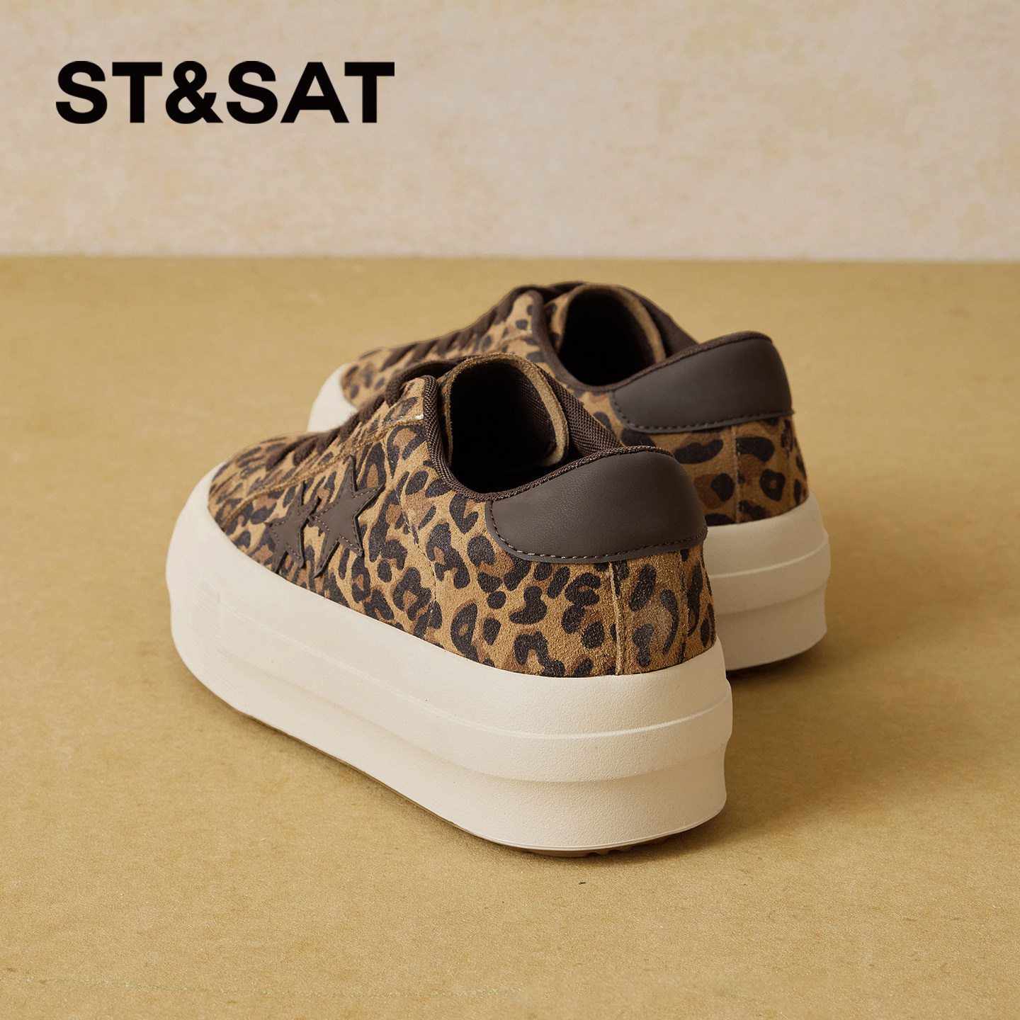 星期六厚底德训鞋女2026年春季新款时尚百搭豹纹阿甘鞋星星休闲鞋