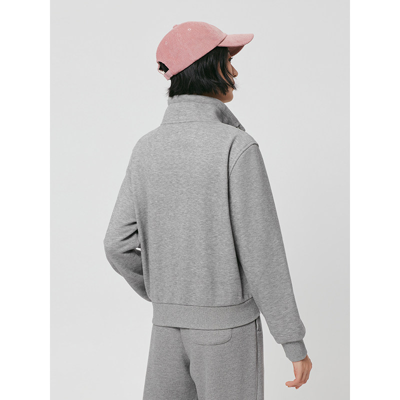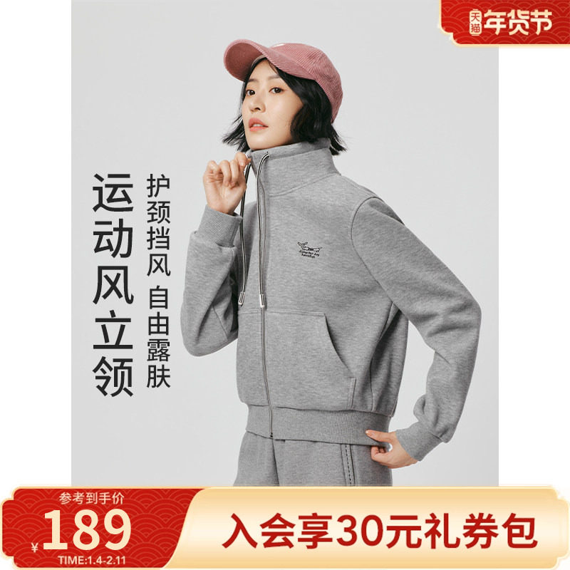 热风女士加绒卫衣2025年冬季新款经典简约运动风立领加厚开衫外套