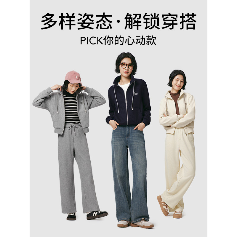 森马史努比系列卫衣女外套摇粒绒保暖冬宽松半拉链立领刺绣上衣