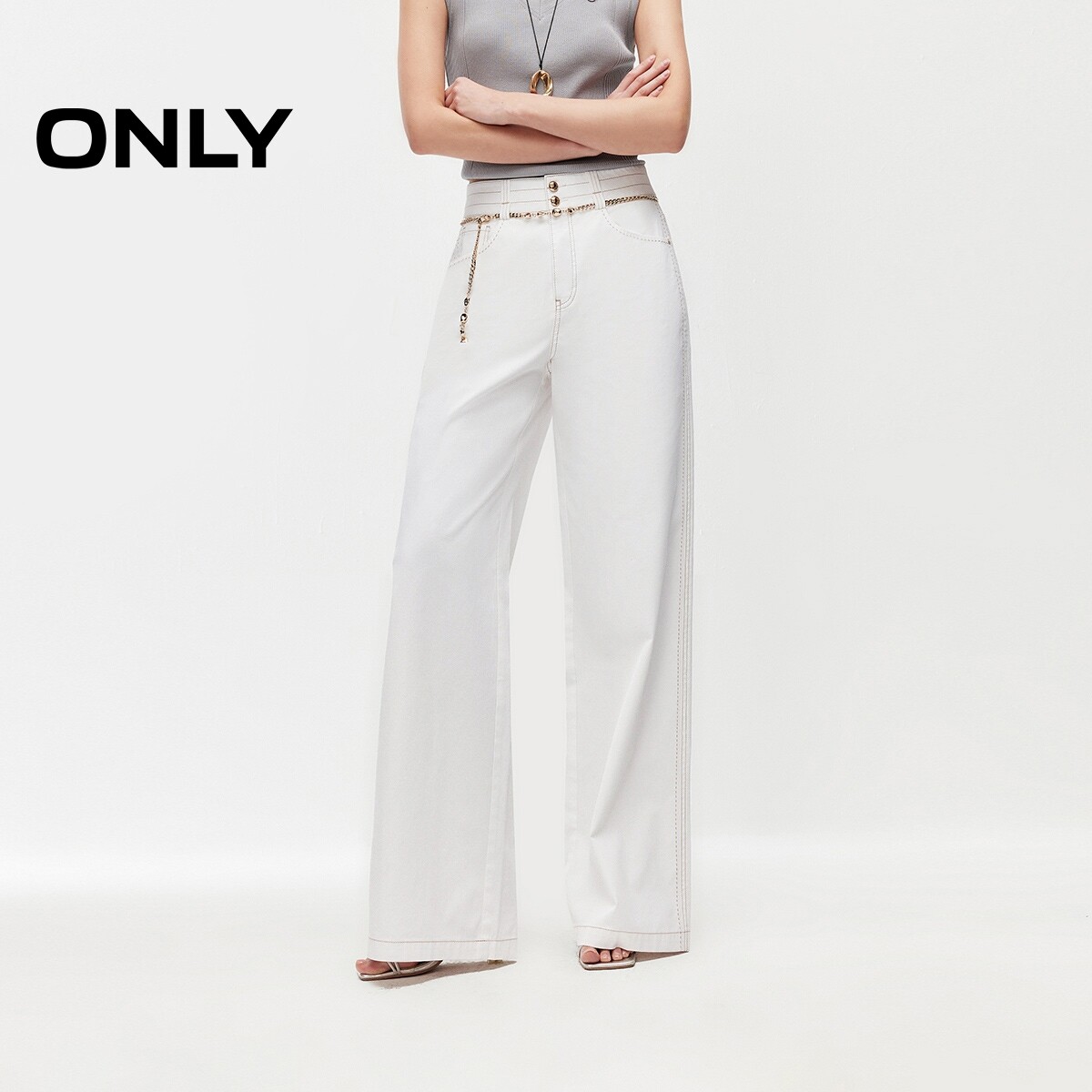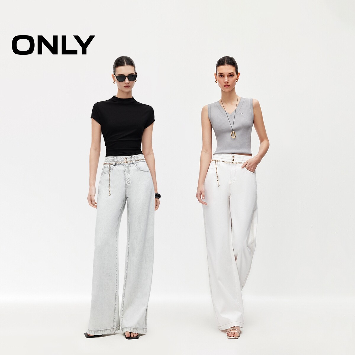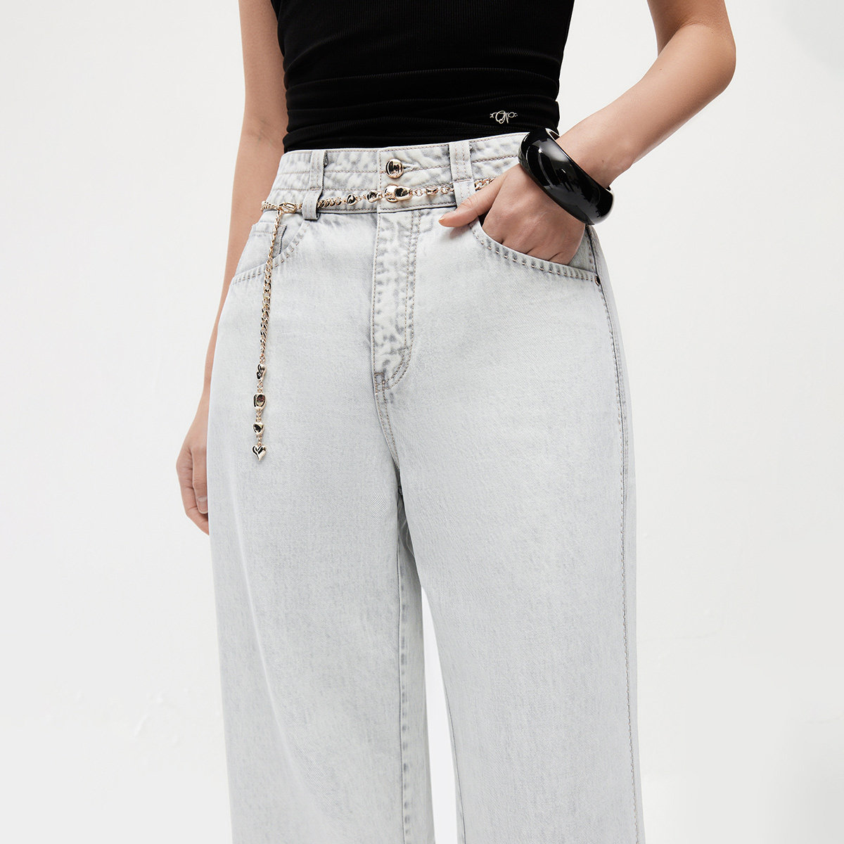 ONLY2026春季新款含莱赛尔松弛感水洗腰链装饰宽松直筒牛仔裤女